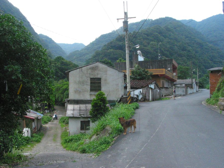 1541 接上柏油路,北114鄉道11.9K處,【山猴洞登山口】,路口附近約有十戶人家,取右沿柏油路續行。舊木頭電幹熊空幹一二五號,水泥電幹大豹幹208號(離登山口約100公尺遠)。