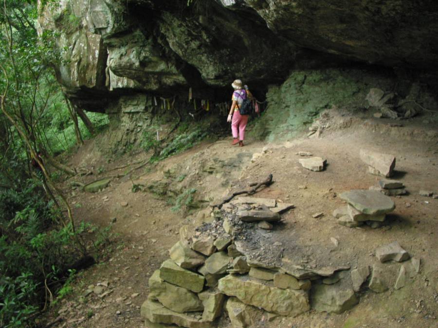 1401--1406 <8>【山猴洞】,大岩石底下凹處,有石頭堆砌成的平台,可避雨。仔細觀察拍照後,續向右下切。H840M