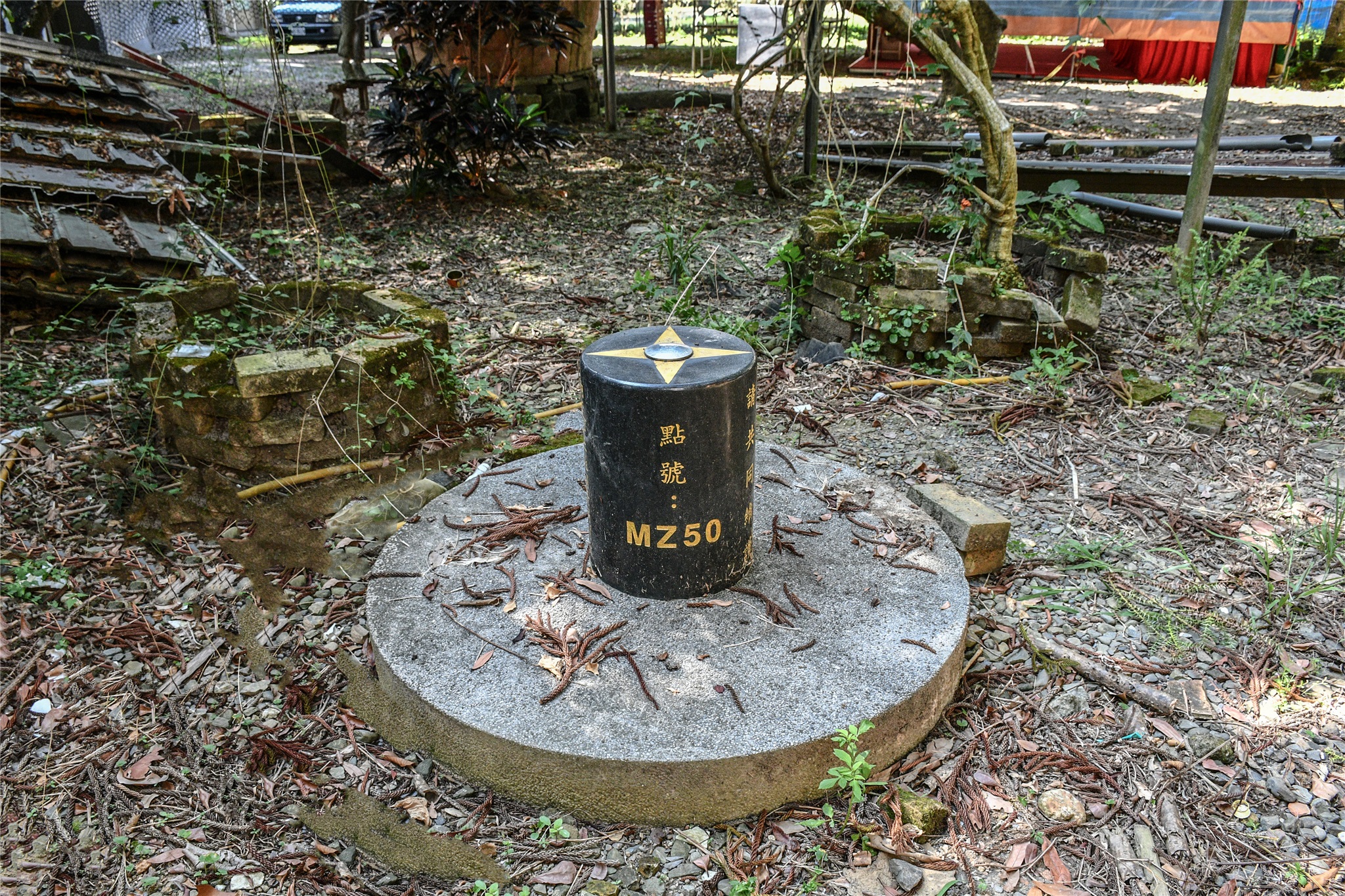 柑子園三等控制點MZ50位在停車處北方約45公尺處大圓瓶型水塔旁。