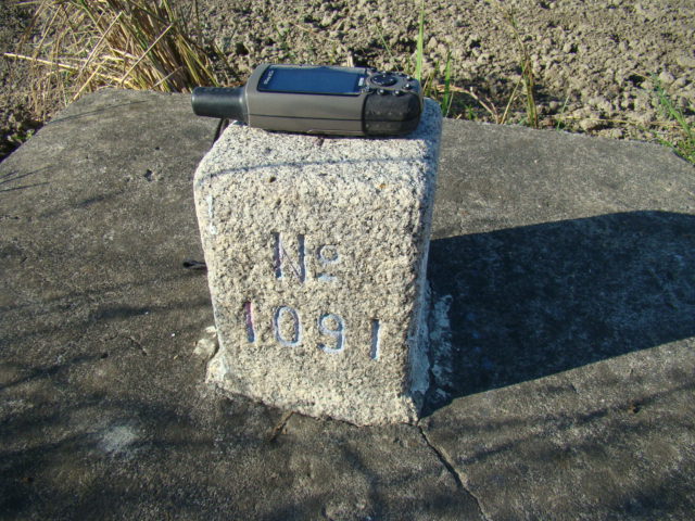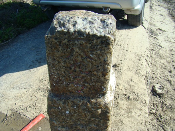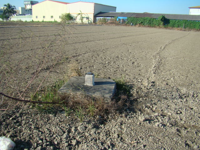 早上下班後先到2-1091善化基石作點位校正,以備等一下3-489五風基石的尋找。0830到達工務所,山哥已經在大門口等候了,經過山哥和工地主任一番交涉後,由一位熱心的工程師帶領往基石位置。到達時發現現場正如馬克菲先生的照片一般,已被推土機整個犁平了,根本看不出原來的地貌,經過精確的定位後,由山哥試挖約10分鐘,本人在旁協助,但沒有任何收穫,此時熱心的工程師幫忙我們把附近做工程的怪手叫來,在本人劃圈的約4X4公尺內範圍挖掘,首先挖出基磐,然後再挖出已經橫躺的基石。兩個人把基磐及基石移到馬路上,然後由山哥進行艱苦的清洗,最後移到山哥的車子載回山哥家暫時保管。