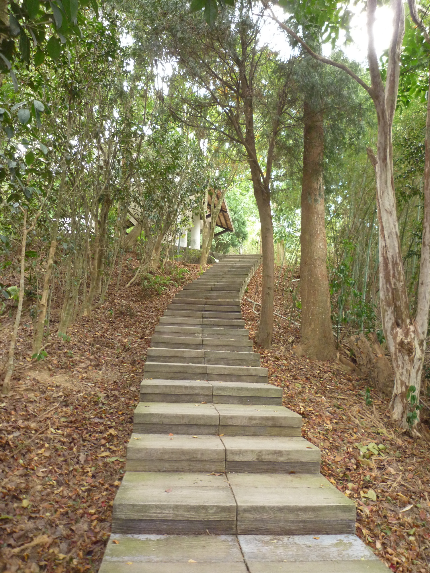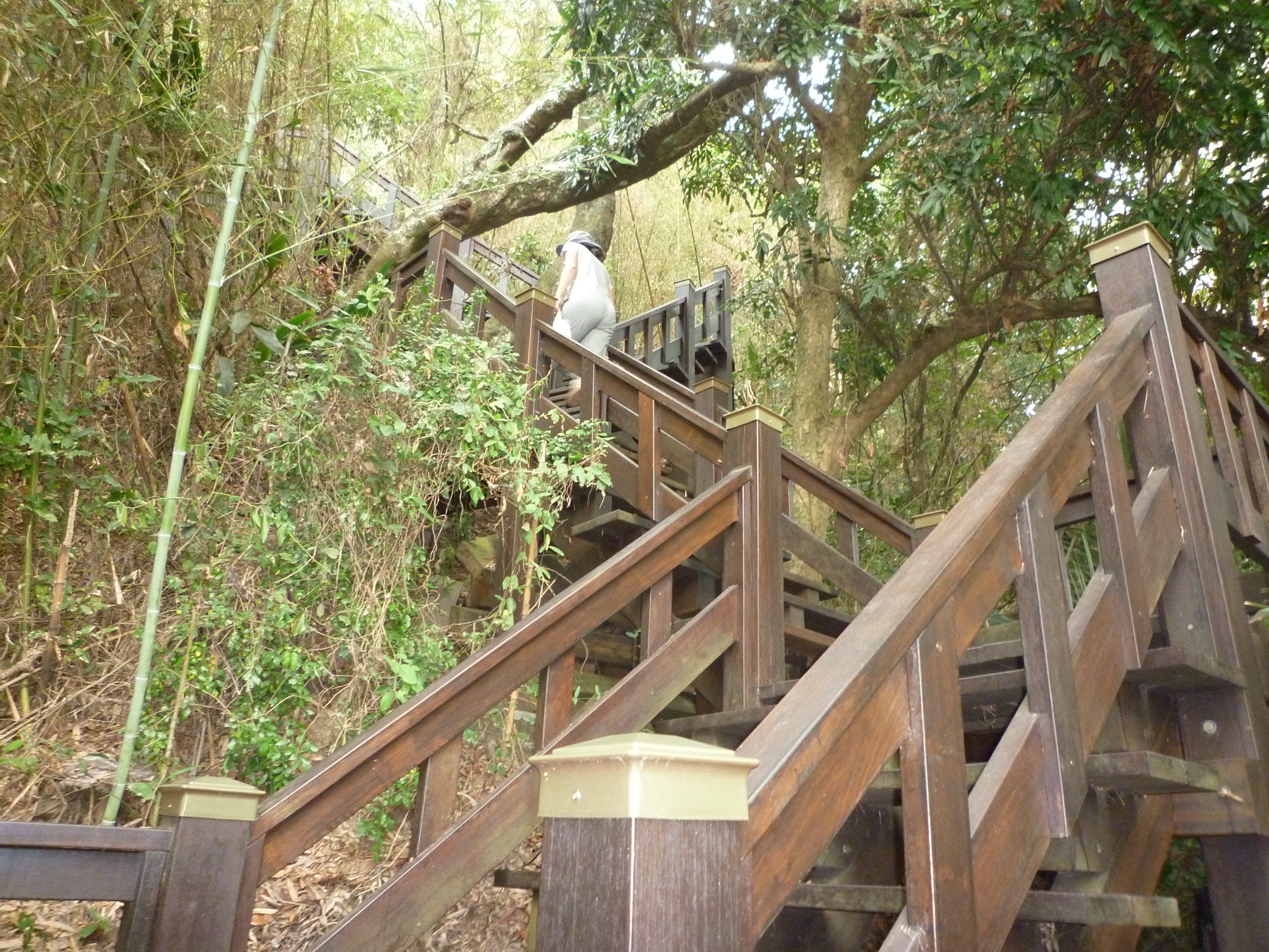 9鳳凰山步道登上貓仔亭前,木棧道曲折坡陡步步高升而上