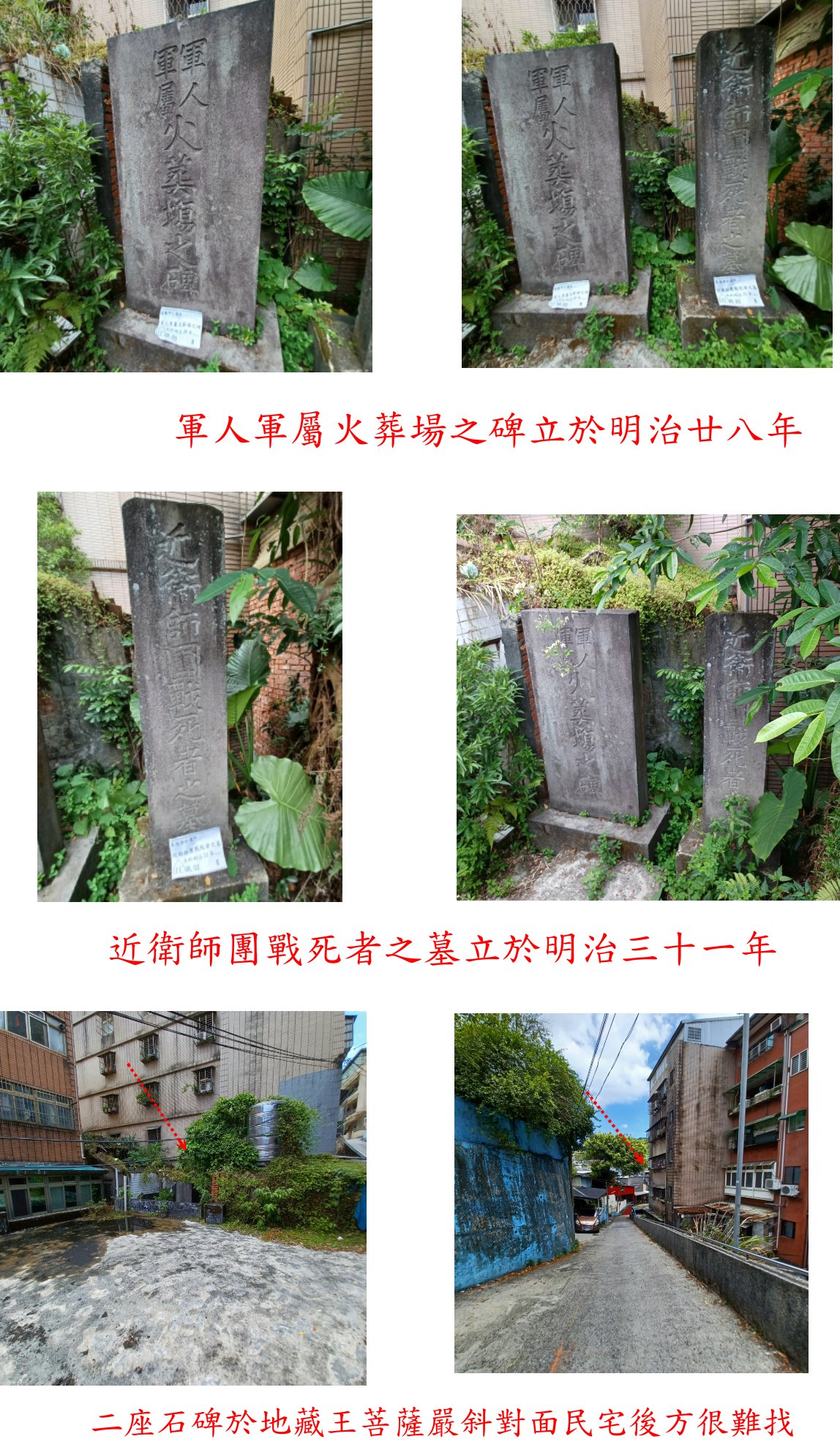 8/3至基隆仁愛區的嚴放寺後山附近尋訪6座古石碑,分別為「陸軍步兵少尉正八位松田篤三之墓」、「新見碑」、「招魂碑」、「招魂碑移建記」、「軍人軍屬火葬場之碑」與「近衛師團戰死者之墓」,這幾座石碑皆與1895年日軍發動攻台戰爭有關,當時有數千名將士陣亡或病死,分別立墓碑紀念。
