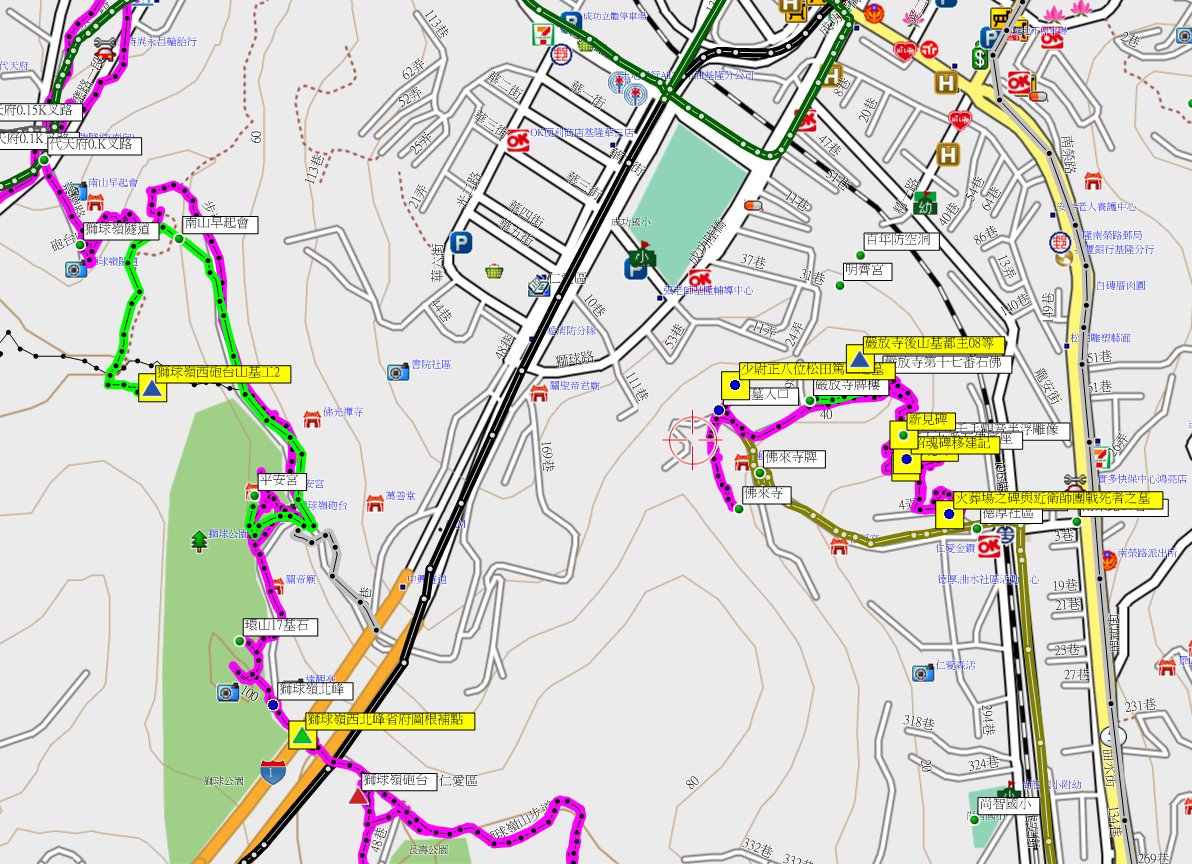 3、嚴放寺後山:位於基隆市仁愛區,高75公尺,基都主08、盛益1號基石,另有陸軍用地石柱;座標323819 2779983。