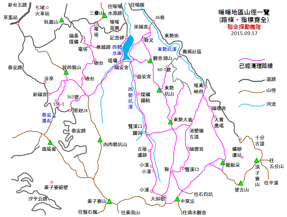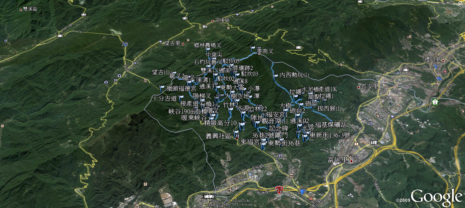 台二丙通車後銜接中山高或三高轉62快暖暖下很方便,正在想這麼山區有此快捷到路連結想必會變成熱門觀光區(十分老街因這條路已經超過平溪老街人潮了),有此登山路線圖GPS導航更方便了。