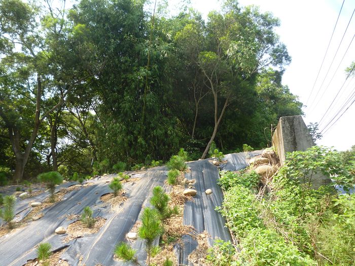 3.檔土牆右入塑膠覆蓋植被取右約5公尺入雜林