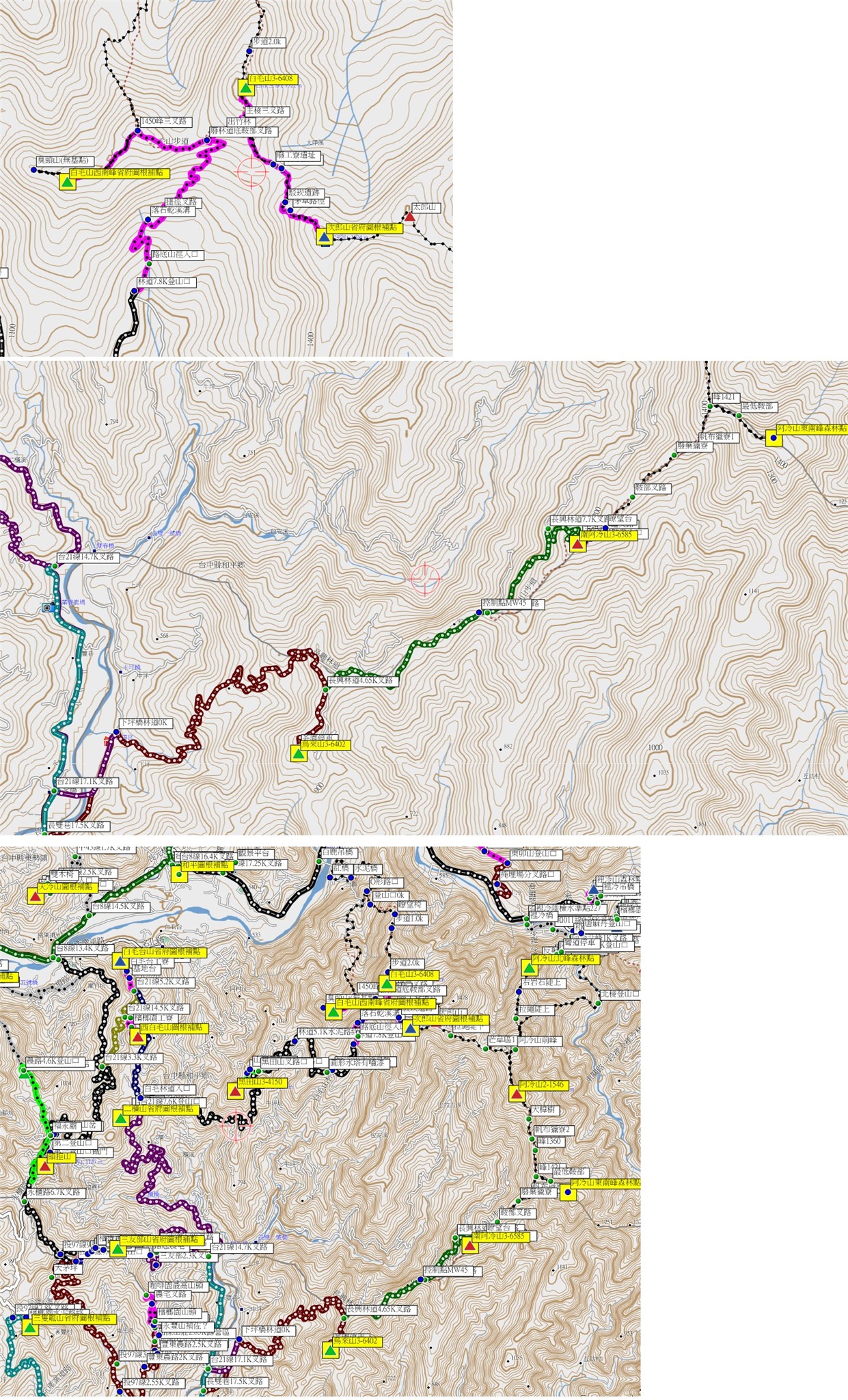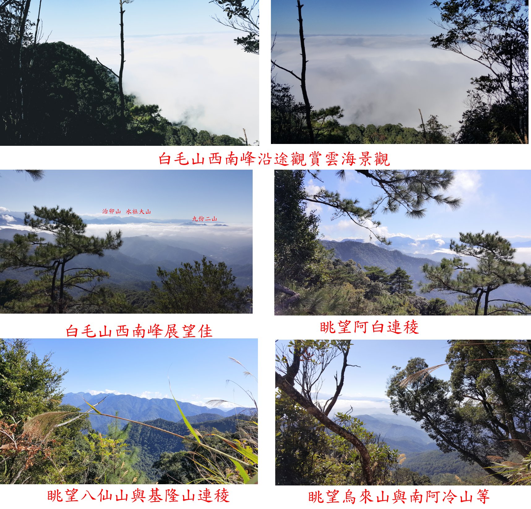 白毛山西南峰、白毛山、次郎山、烏來山與南阿冷山-台中與南投基石巡禮篇