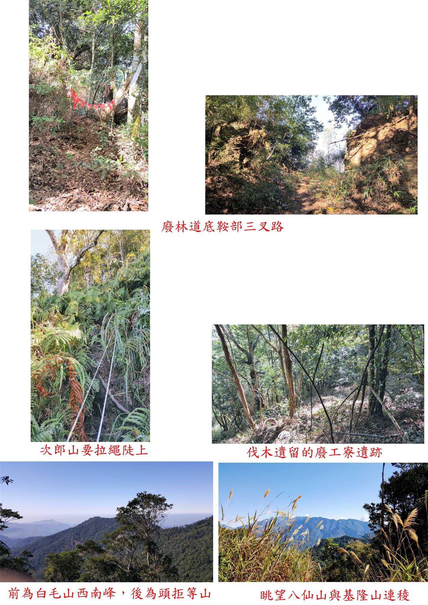 13:42回至廢林道底三叉路,休息等校長去白毛山西南峰回來,不知校長是否已下山就先走了。