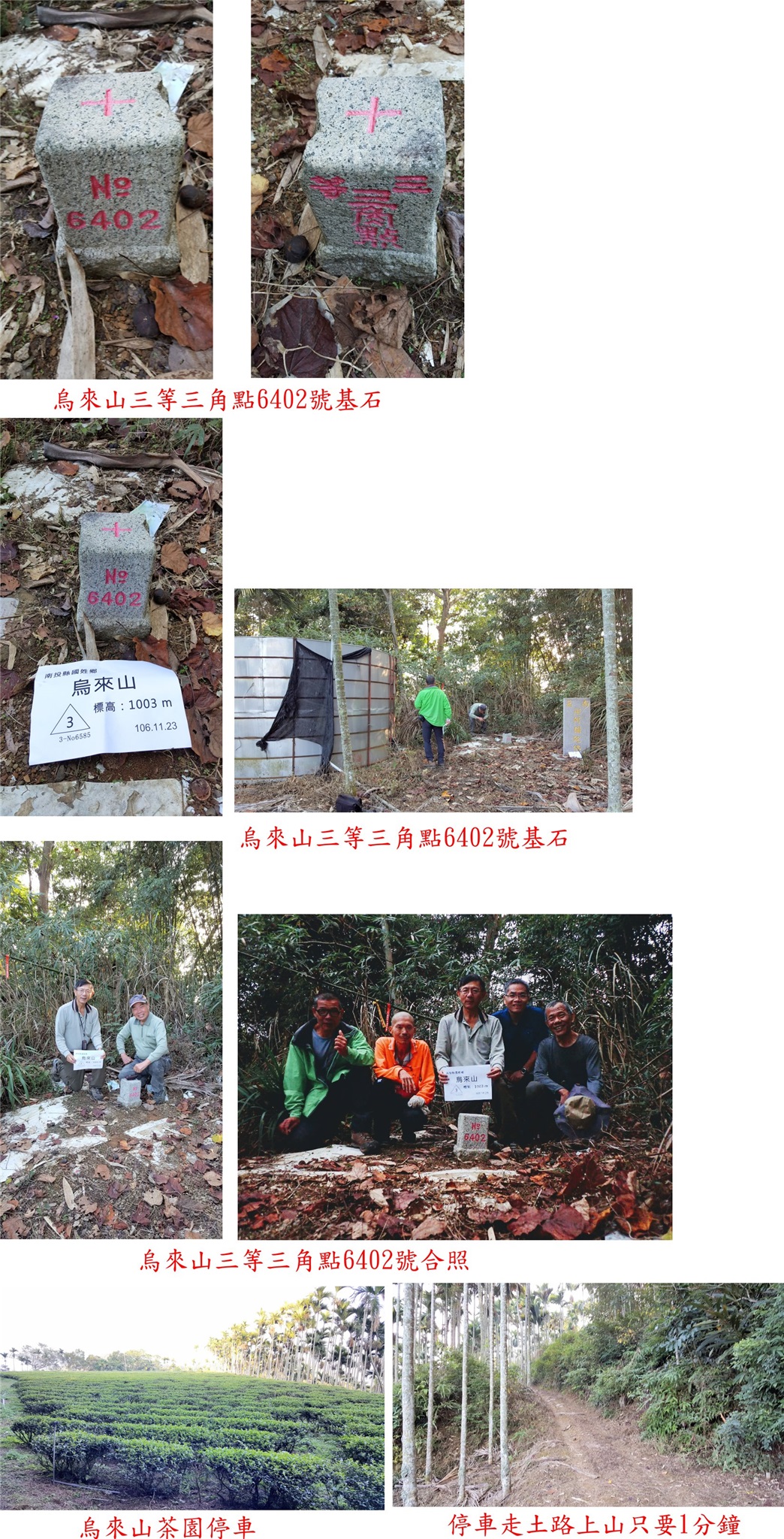 15:50△烏來山,標高1003公尺,三等三角點6402,基石於圓形水塔旁;旁新立有一阿彌陀佛石碑,山頂展望欠佳,上來只要1分鐘,此山10年前曾來過陪校長再來一趟。