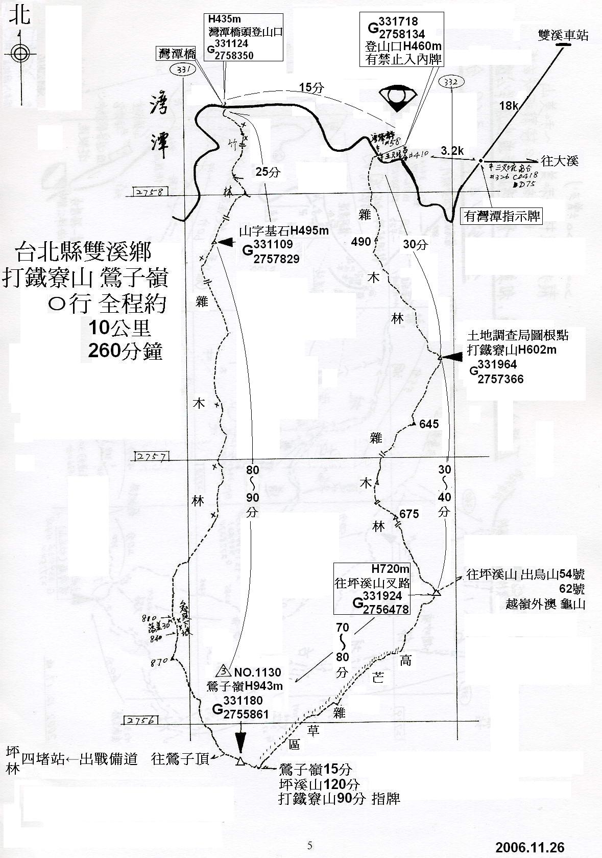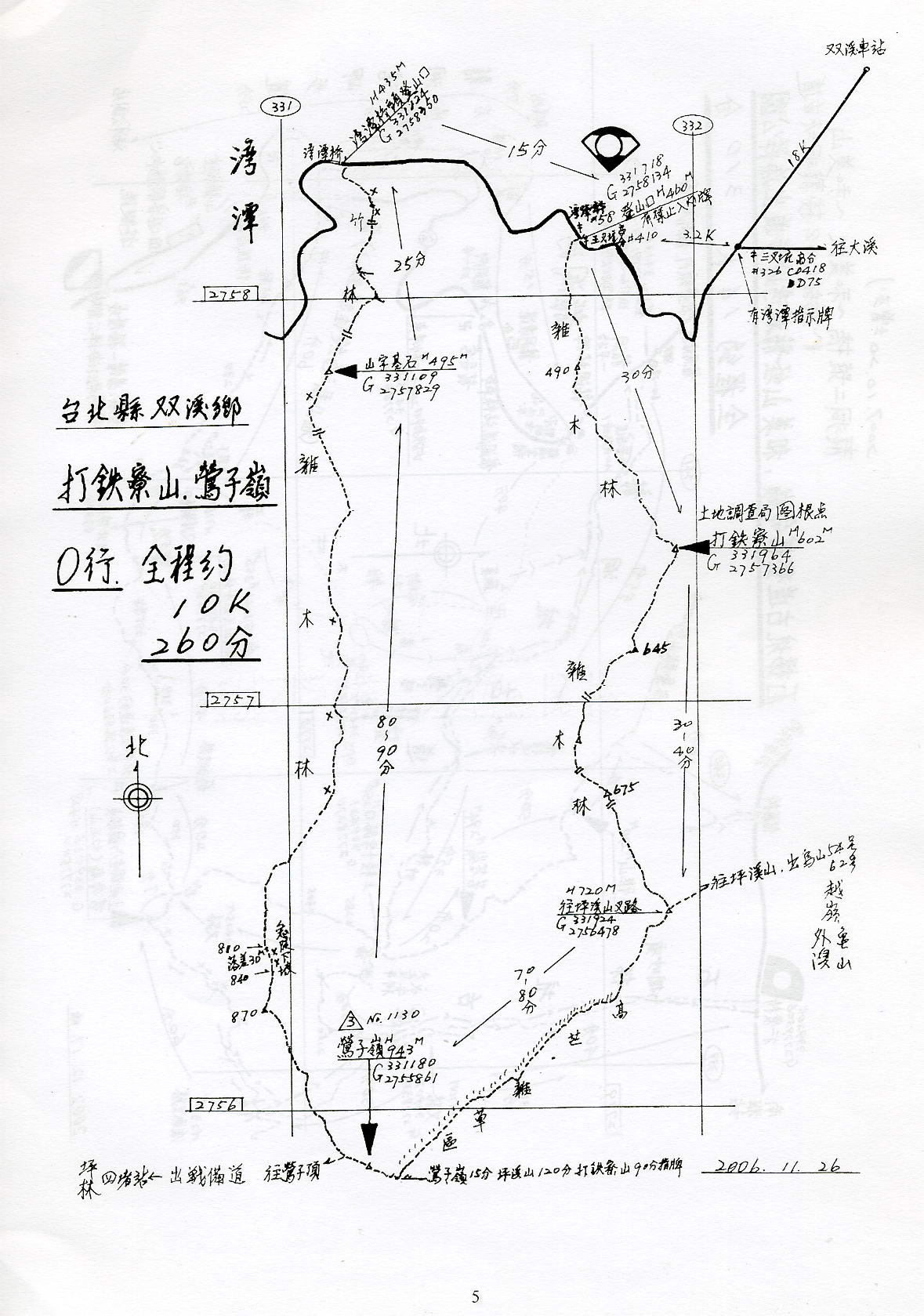 台北縣雙溪鄉打鉄寮山,鶯子嶺O行