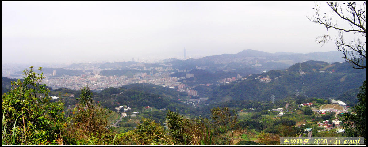 鵝角格山山頂西北方向的視野不錯. 遠方可見 101 大樓, 圖右下屋頂最大的建物即貓纜貓空站.