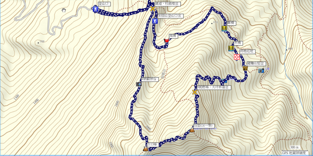 行程路線:登山口前停車場→大坪登山口H1350m→