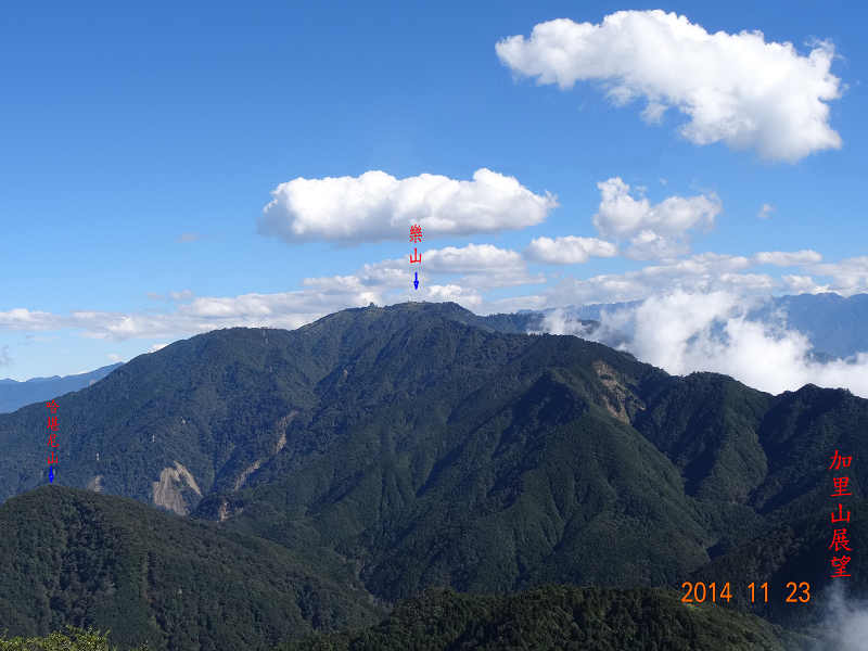 天氣晴朗時「加里山頂」可遠眺望樂山、大霸群峰、聖稜線等諸峰,