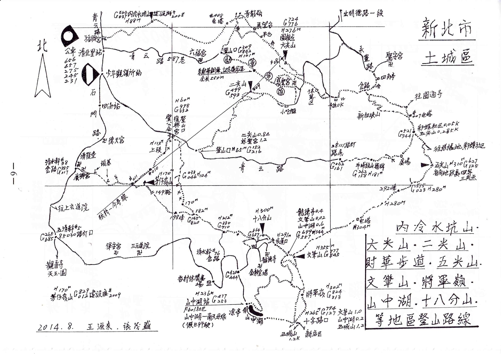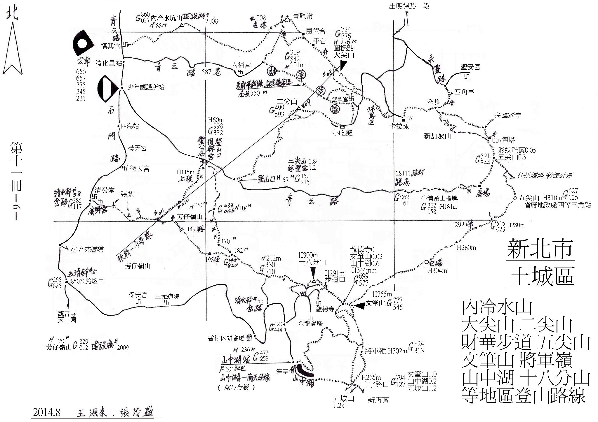 (十一006) 內冷水坑山、大尖山、二尖山、財華步道、五尖山、文筆山、將軍嶺、山中湖、十八分山等地區登山路線
