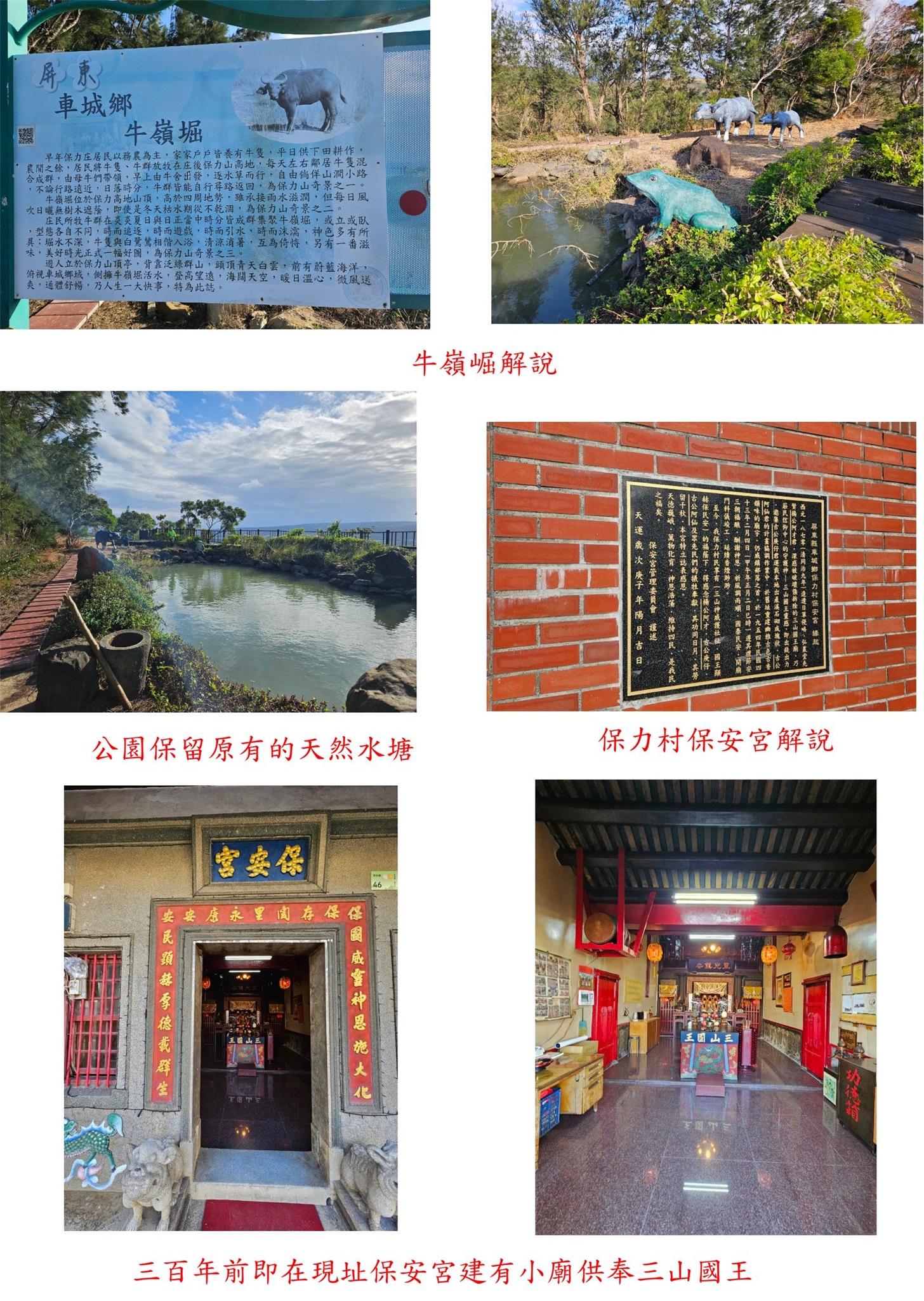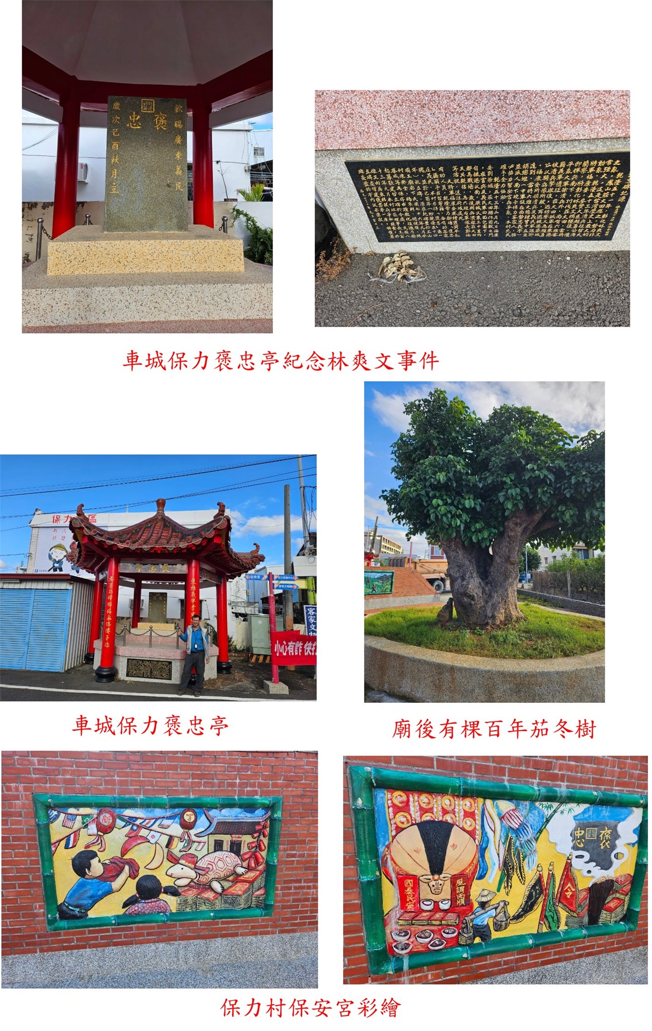 由陵頂公園下來順訪車城保力褒忠亭,旁為保力村保安宮,保力村是全台最南端的客家村莊,三百年前即在現址保安宮建有小廟供奉三山國王,廟後有棵百年茄冬樹。