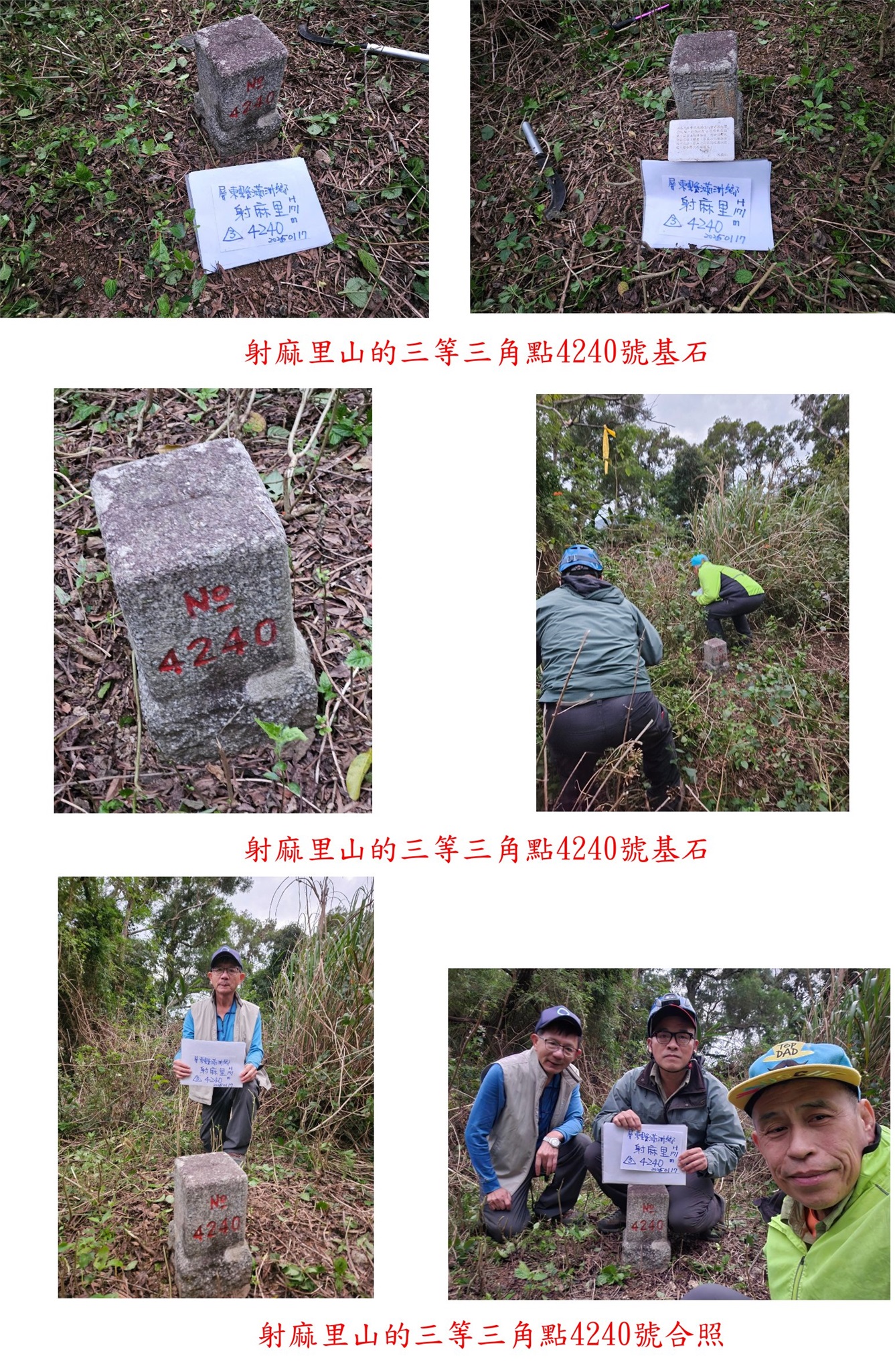 左入山徑、經過一墳墓,走約4分鐘抵達射麻里山3-4240,基石於山徑左側的草叢中,此處非最高山頭無展望;此點陪隊友再度造訪,往返費時15分鐘。