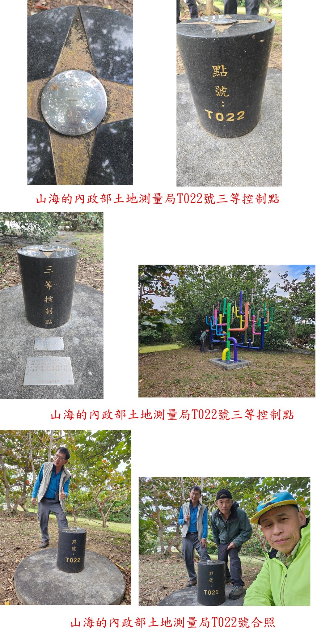 回到專4-1道路10.3K叉路,路旁小公園內有顆山海的T022號美化點,係內政部土地測量局T022號三等控制點。