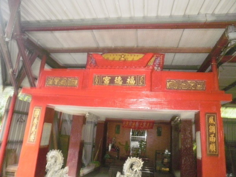 14:34 通過【平湖七號橋】下方,往右走平湖產道經【坑頭】幾戶民宅,來到十分五村福德祠,稍作休息 H268m。