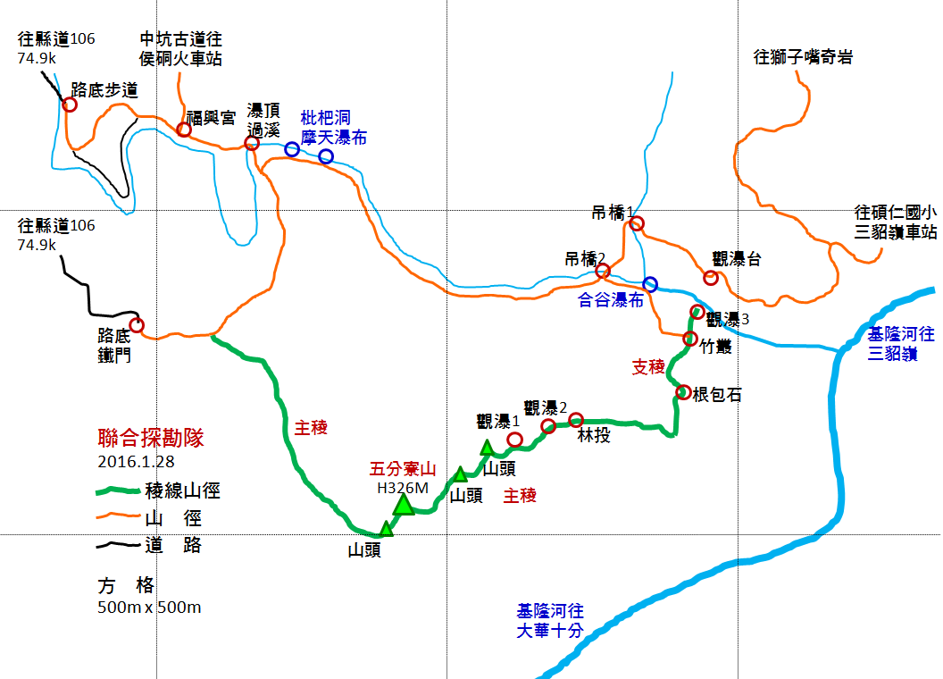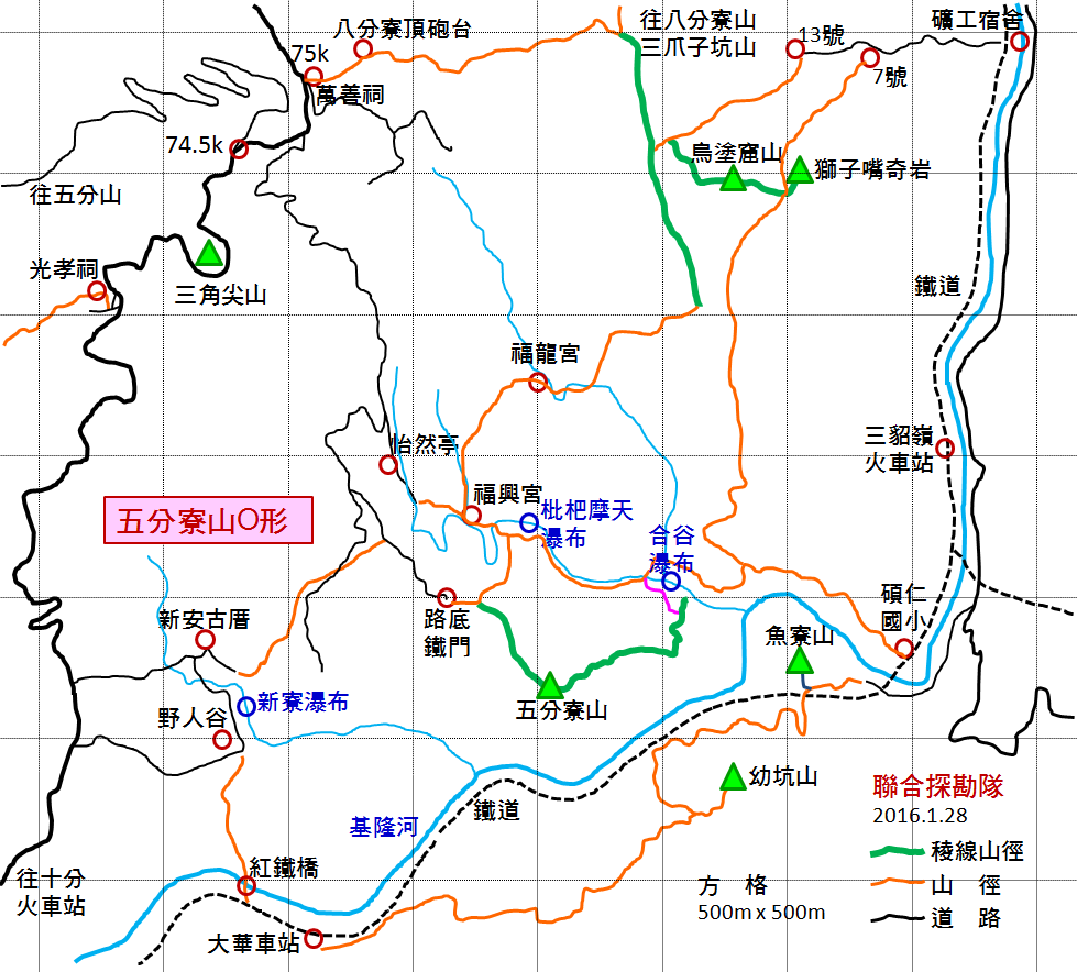 打通五分寮山稜的後半段,五分寮山~合谷瀑布,使五分寮山O形的夢想成真。