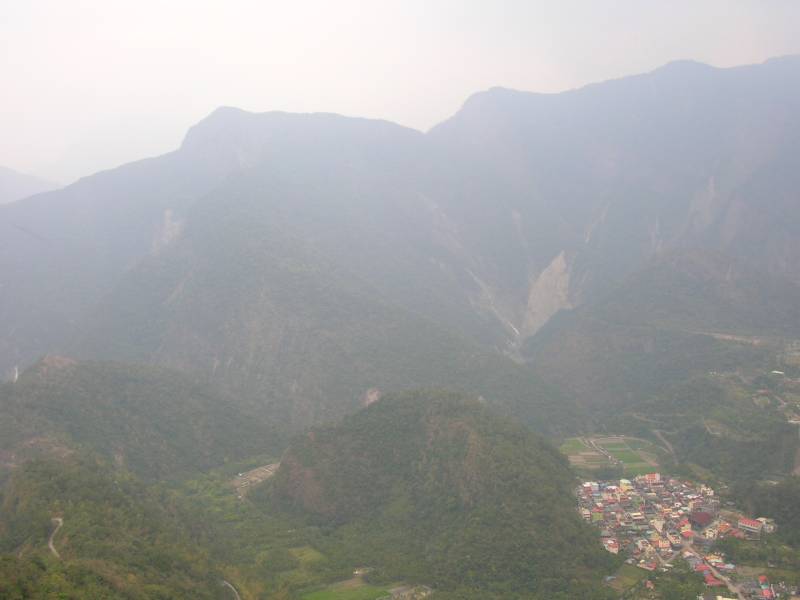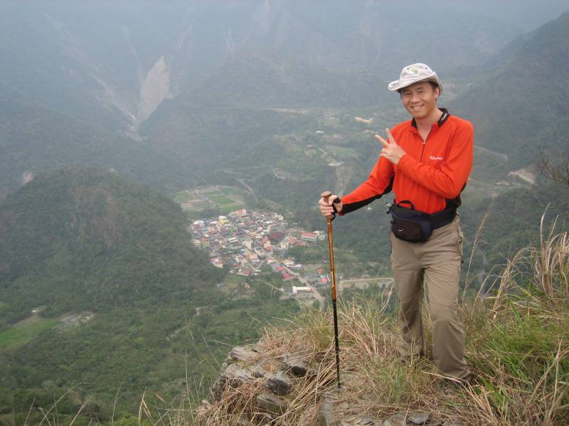 從停車處至此僅花十分鐘,站在山頂展望極佳,完全的360度的展望,多納一帶山巒盡入眼底。一望無際的視野,令人不由得想化身成一隻老鷹,敞開雙翅飛向無垠的蒼芎。整座山頂為巨石所疊嶂而起,三面均是絕壁,由其靠近多納村這一側,更是萬丈身淵。立於崖邊向下俯望,曝露感甚大,不由得腳底發麻,要是巨石突然崩落,那真馬上就到多納村了。
