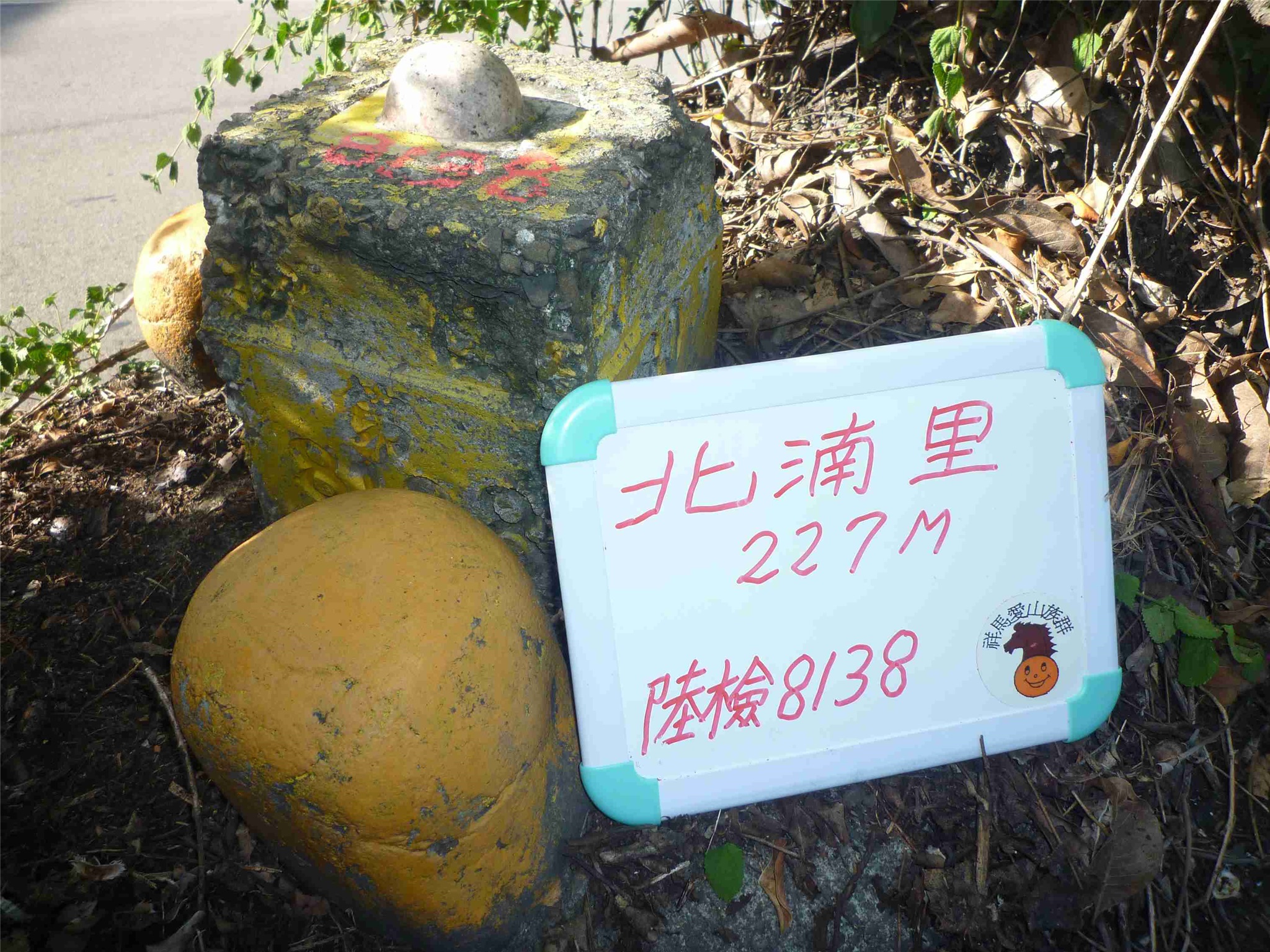 1北湳里(標高227M,陸檢8138一等水準點基石),座標:220803.2683968,新發現