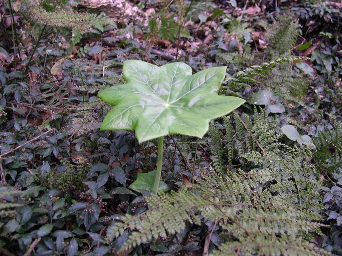 1、在山區中發現一棵罕見的野生八角蓮,八角蓮別名葉下花、獨腳蓮、八角金盤、一把傘,分佈於中、北部及東部山區海拔1000 ~ 2500m陰濕闊葉林下,花期在四、五月間。八角蓮由於其特殊的造型又是解毒藥材而招致大量濫採,野生者所剩不多,已列為保育類植物。