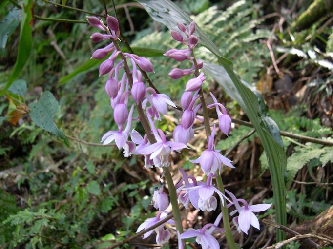 2、山上開了許多淡粉紅色的闊葉根節蘭花朵,於登山途中不妨佇足欣賞一下喔!
