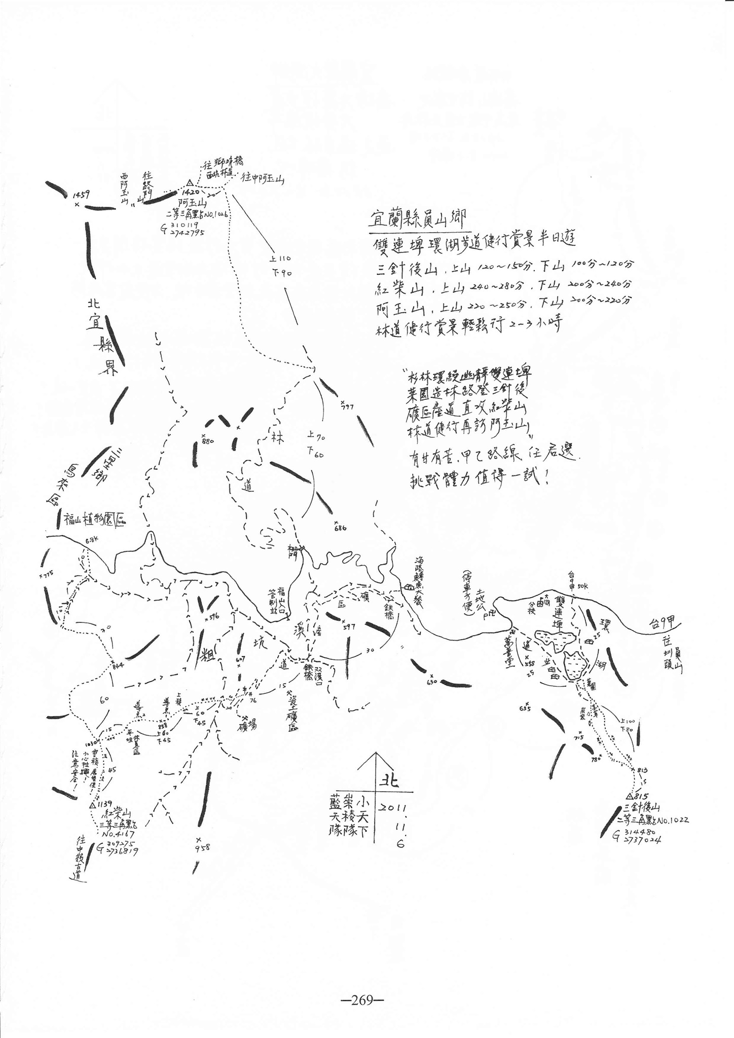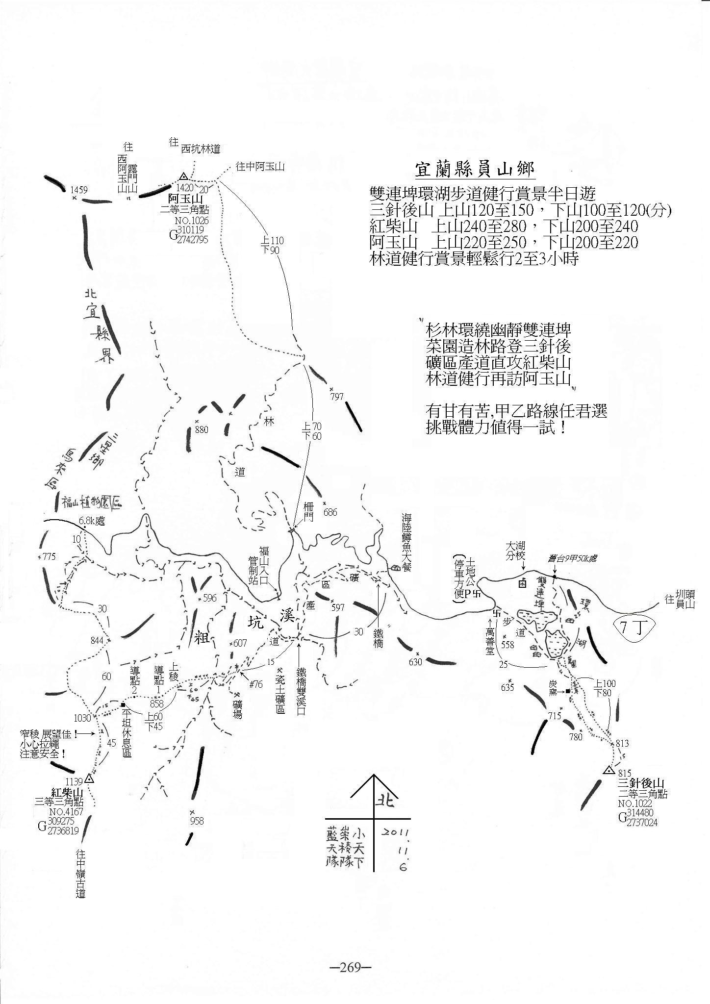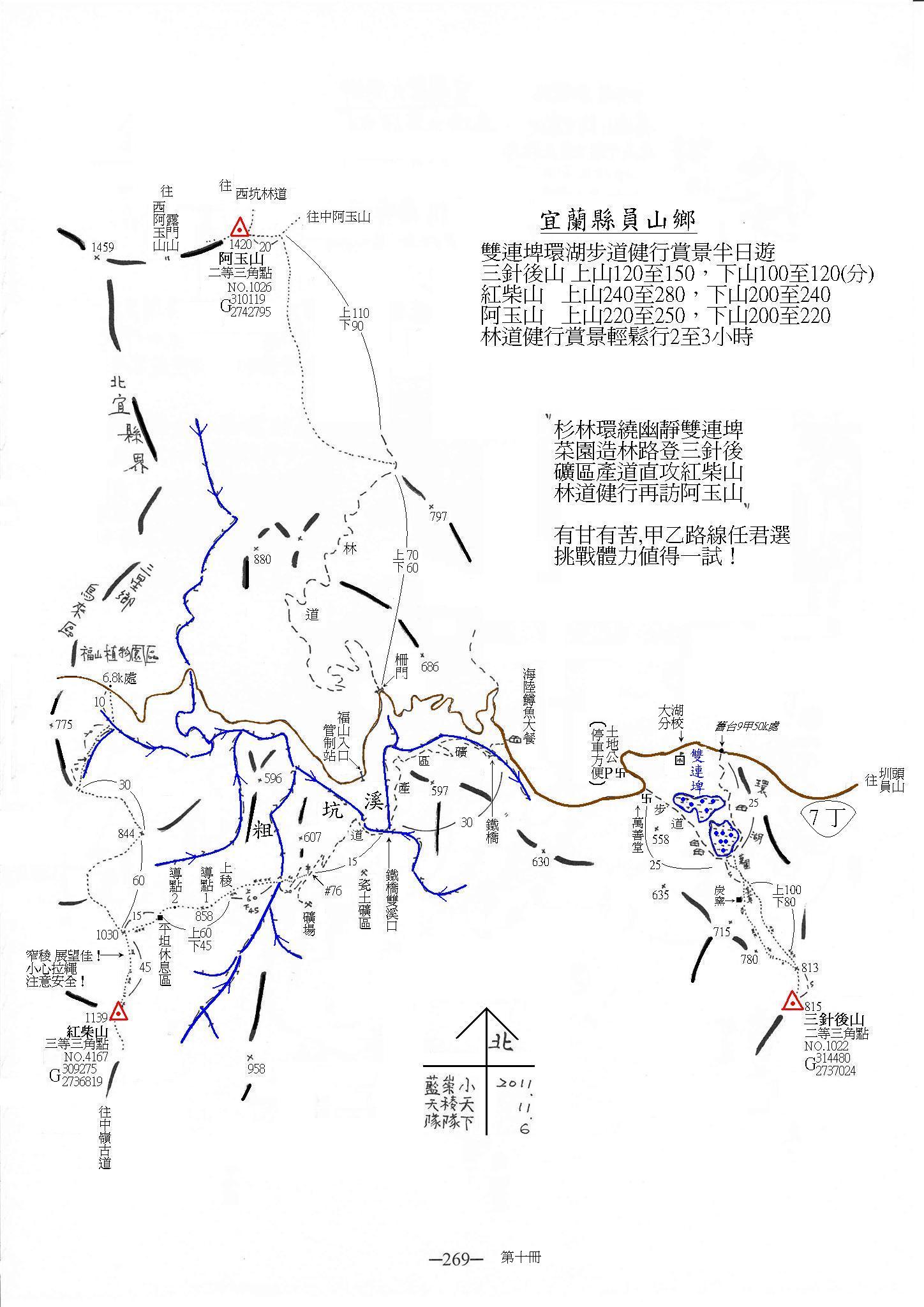 (十269) 宜蘭縣員山鄉 雙連埤環湖步道及三針後山、紅柴山、阿玉山路徑圖2011.11.06