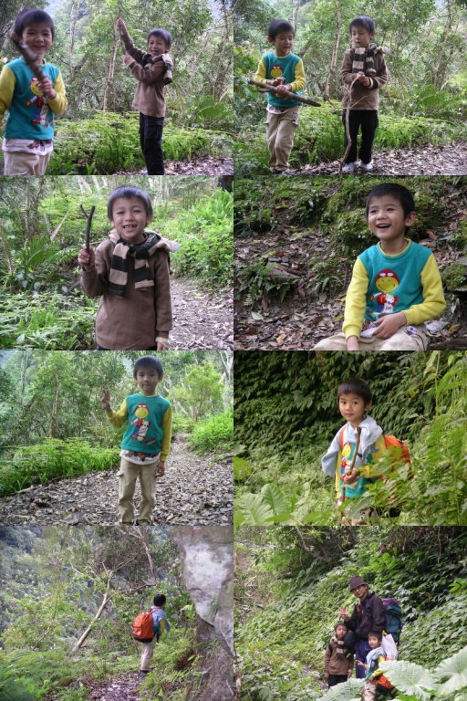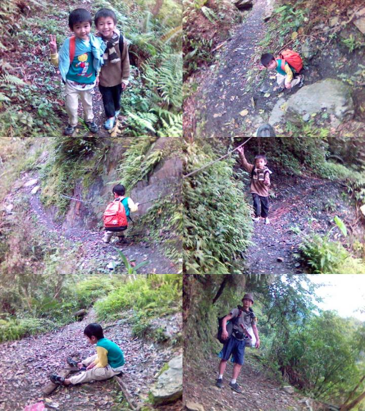 我跨立兩側協助小朋友橫越水光,沒多久在山徑上走著,