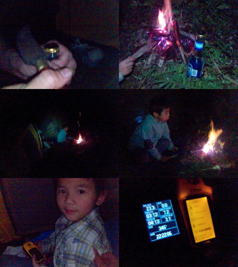 午夜十二點,營火堆木材沒了,轉而點燃的營火棒也熄滅