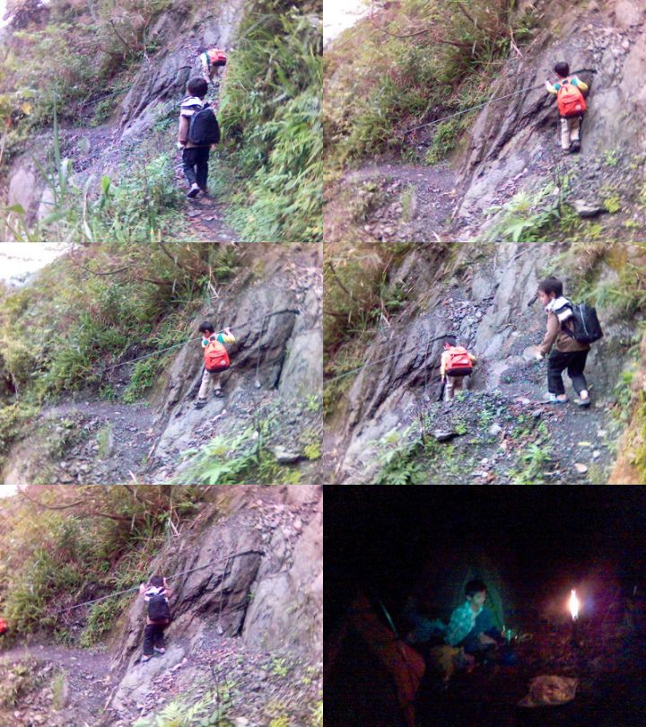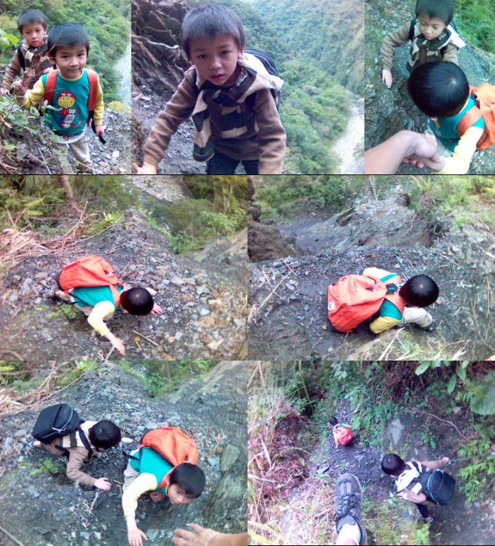 到了崩壁,原本弟弟Leon是膽大的,試走過錐麓古道後,
