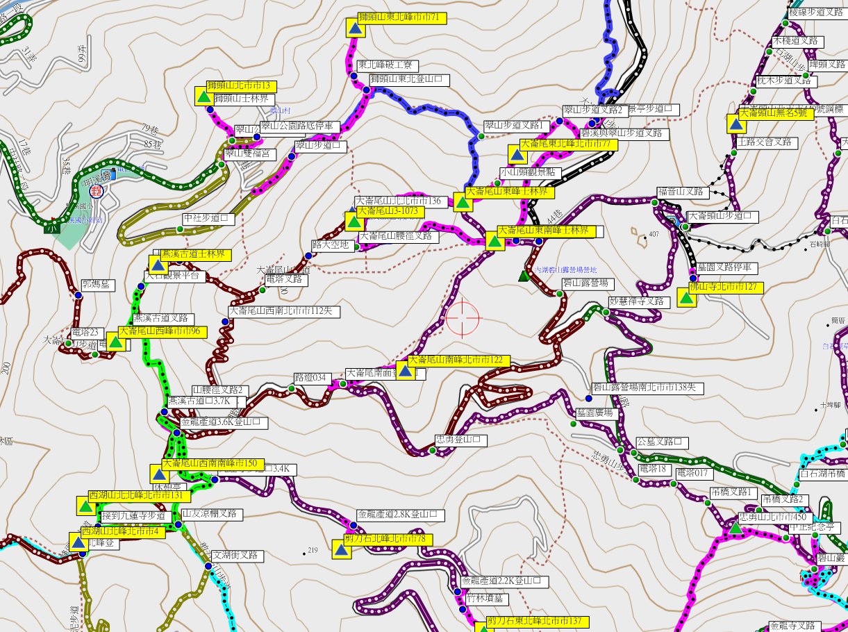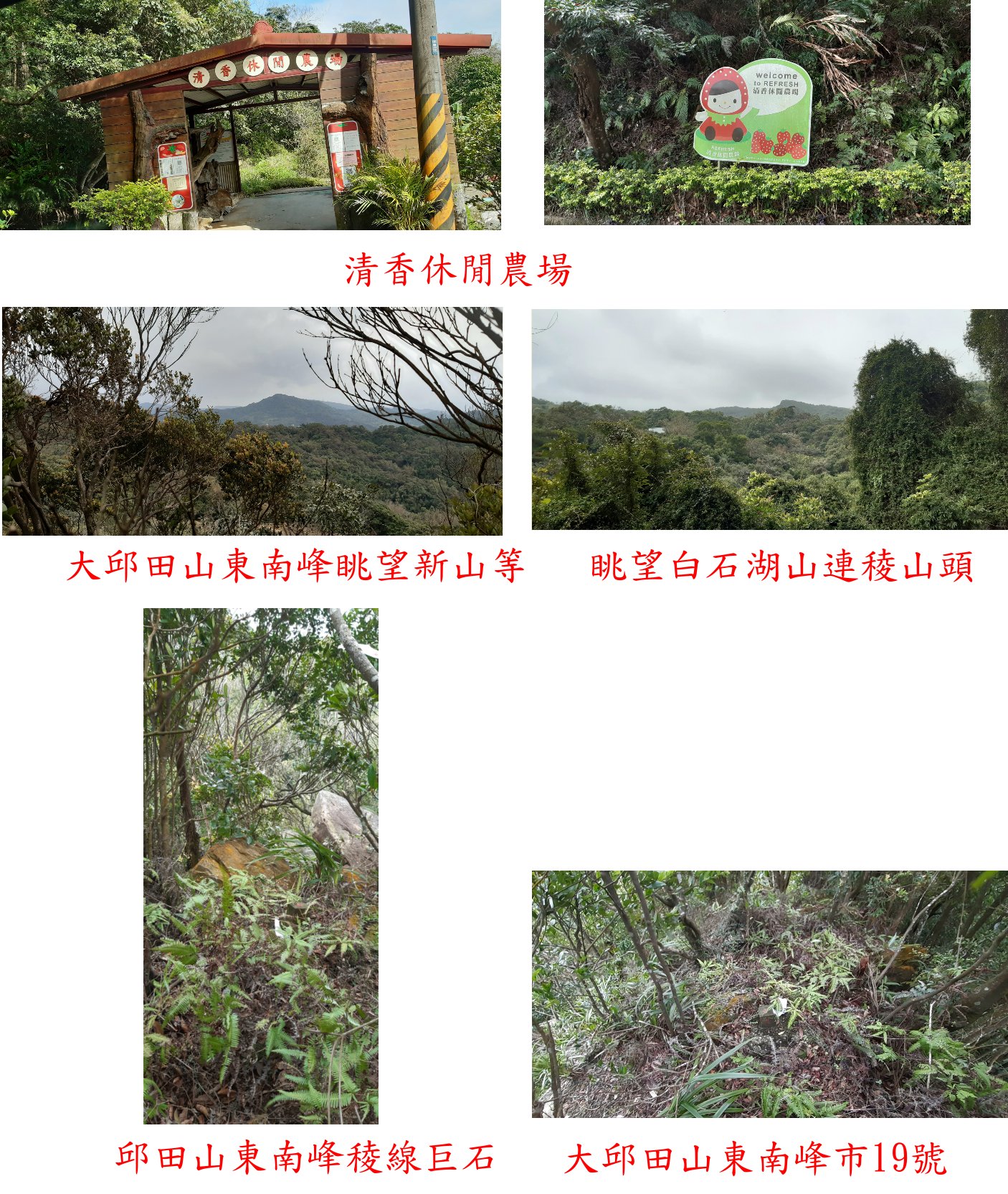 5、大邱田山東南南峰【大湖街】:位於台北市內湖區,標高160公尺,北市市19號基石;座標310899 2777479。