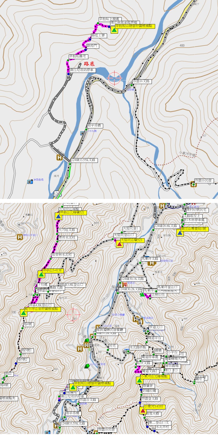 4、辛抱坂山:又稱長崎下山,位於苗栗縣南庄鄉,標高453公尺,總督府圖根補點;座標:2472582717647。
