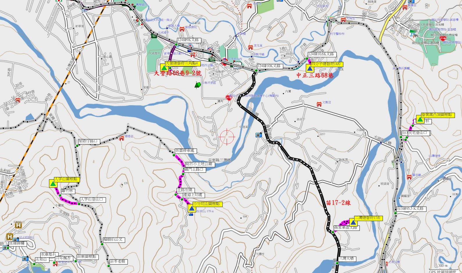 由大營回至124線往東走1.6叉路(10.6K處),路口為新竹客運停車場,右轉中正三路68巷隨即找地方停車。