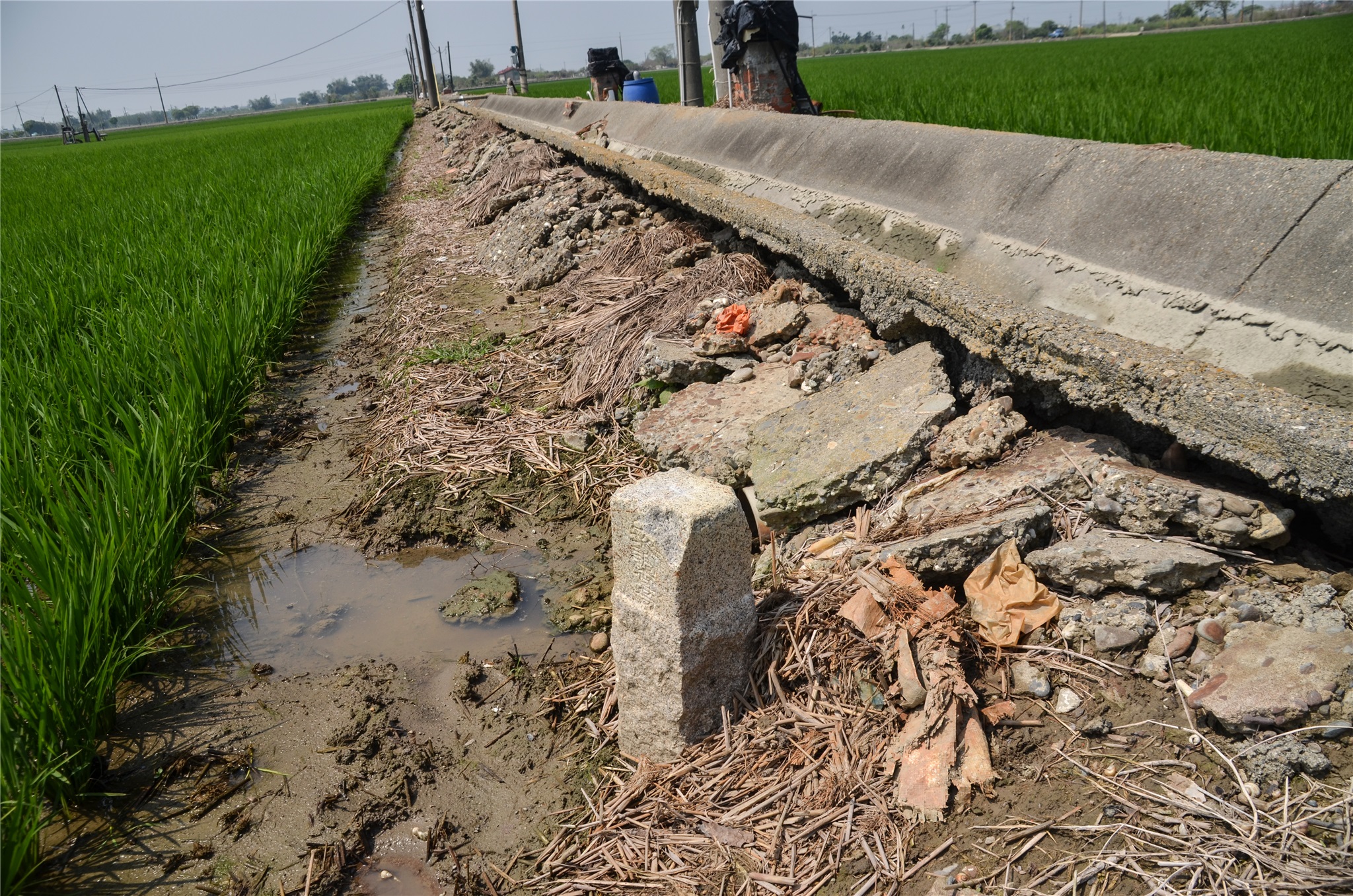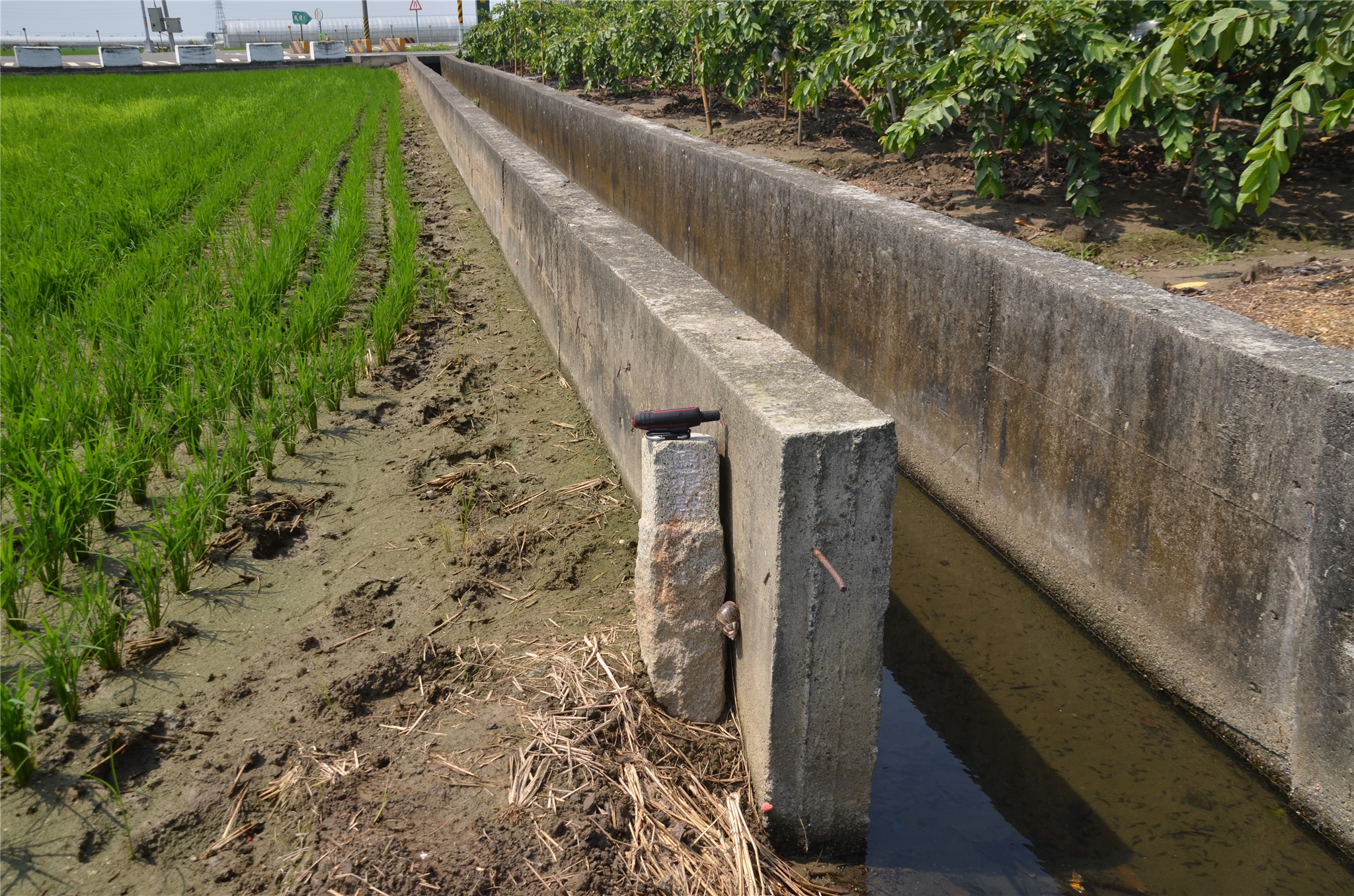 由停車處橫越嘉76鄉道由道路北邊進入田埂北行,35公尺後左轉再行40公尺在水泥溝渠邊找到橋頭圖根點,座標187276 2604624。--------------------------------------------------------------------------------------------------------