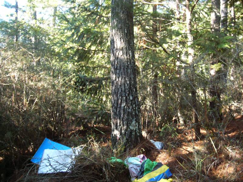 08:06 廢棄苗圃工寮,只見散落的登山床墊,這裡是整片的松針舖地,H2225m。.