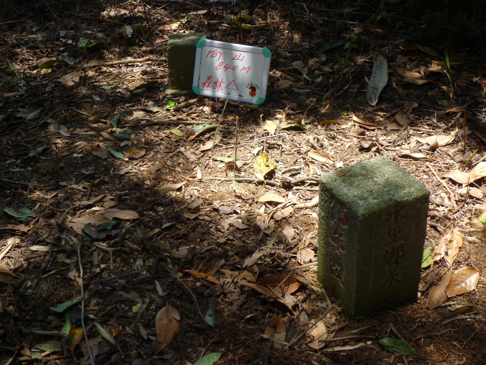 16向山(標高840M,水里鄉水源保護區界07號基石),座標:239290.2638137,在森林點旁邊