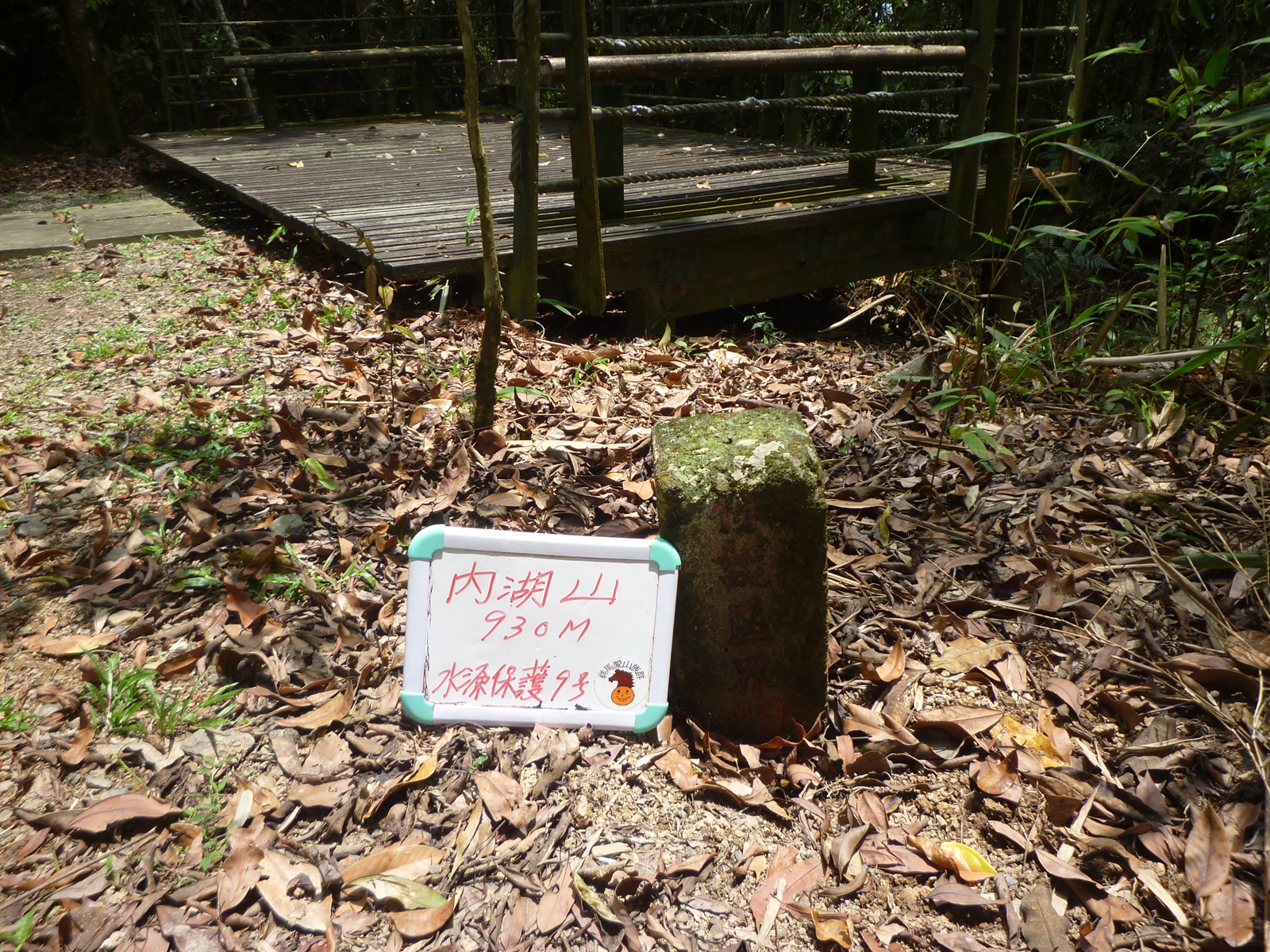 4內湖山又叫文武廟後山(標高930M,魚池鄉水源保護區界09號基石),座標:241798.2640968,在內湖山步道觀景台旁(再訪)