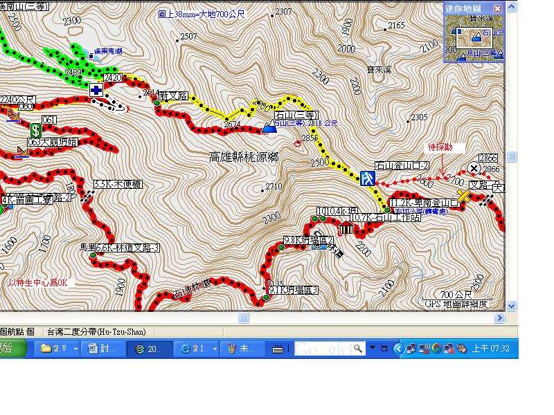07:30南搜5人過大崩塌處(座標TWD67/230583/ 2552379/1964m)。
