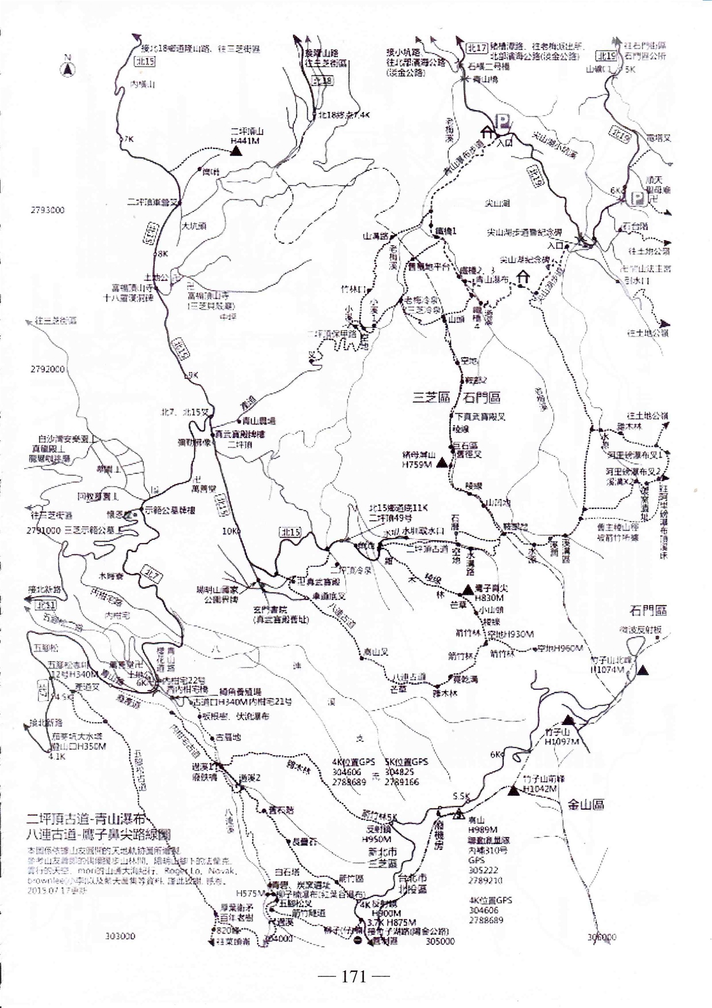 (十二171) PETER ZENG路線圖分享 二坪頂古道、青山瀑布、八達古道、鷹子鼻尖路線圖
