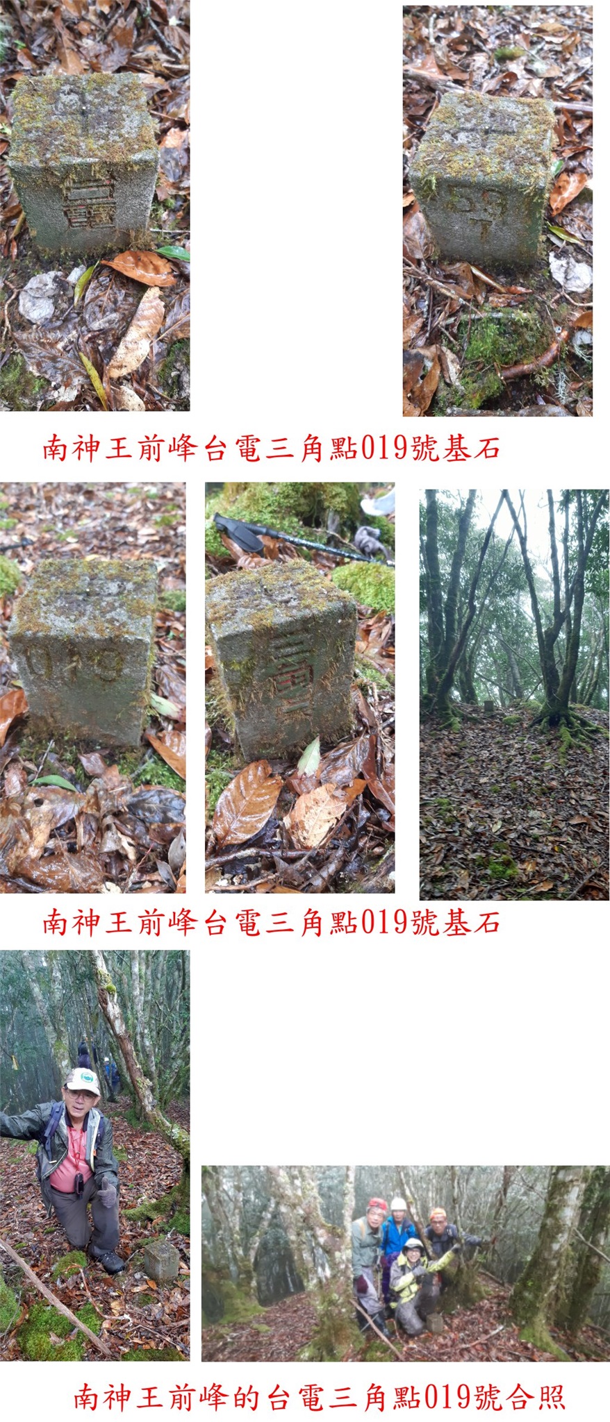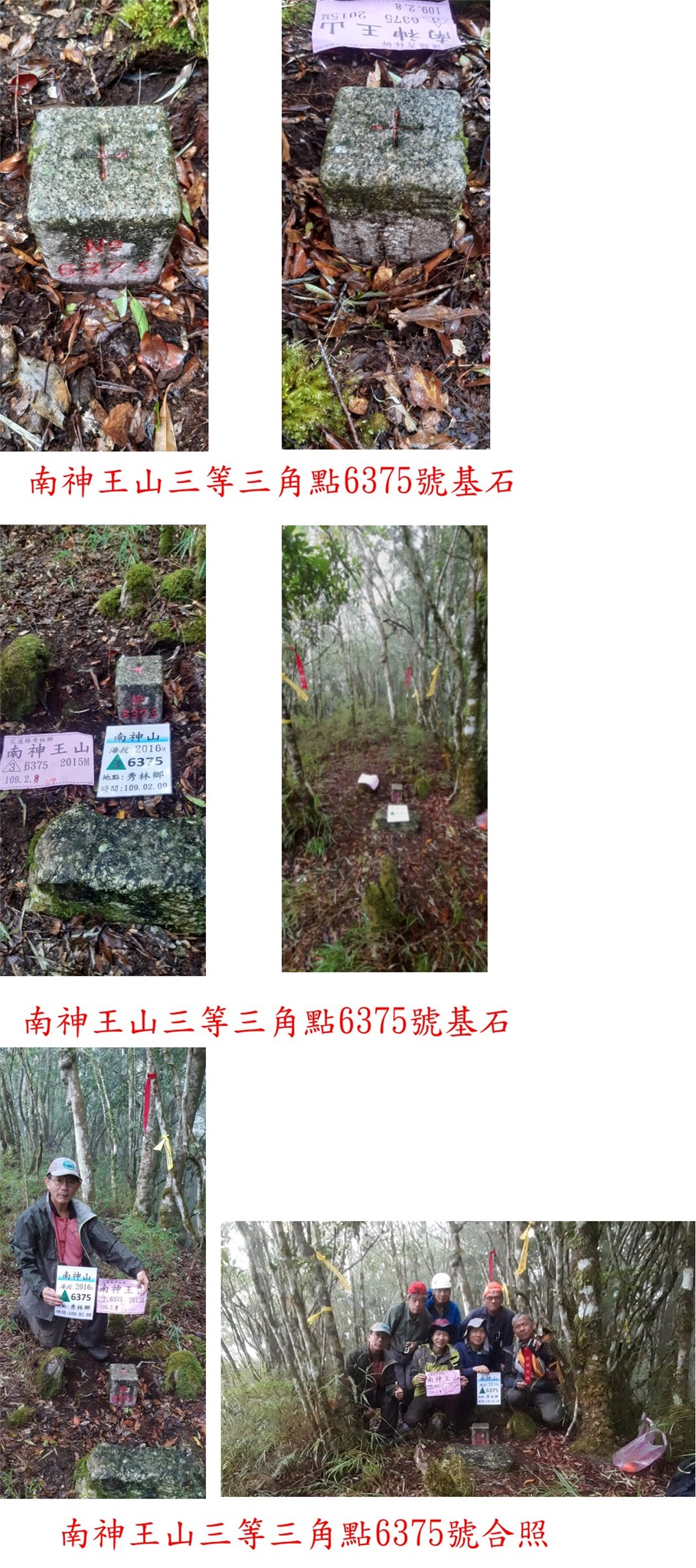 12:06△南神王山,高2014公尺,三等三角點6375號基石,山頂平緩於樹林間無展望;隊友們已抵達多時,感謝孔孟子與小楊兄陪我慢慢走,上山走6小時又28分鐘,山頂溫度頗低濕冷無法久留。