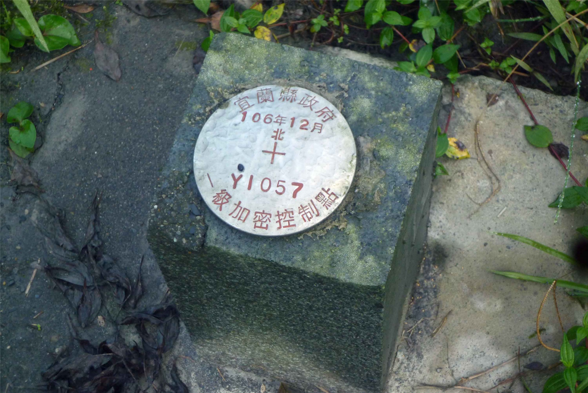 6宜蘭縣政府一級加密控制點YI057銅標基石(標高282M),座標:306266.2729268