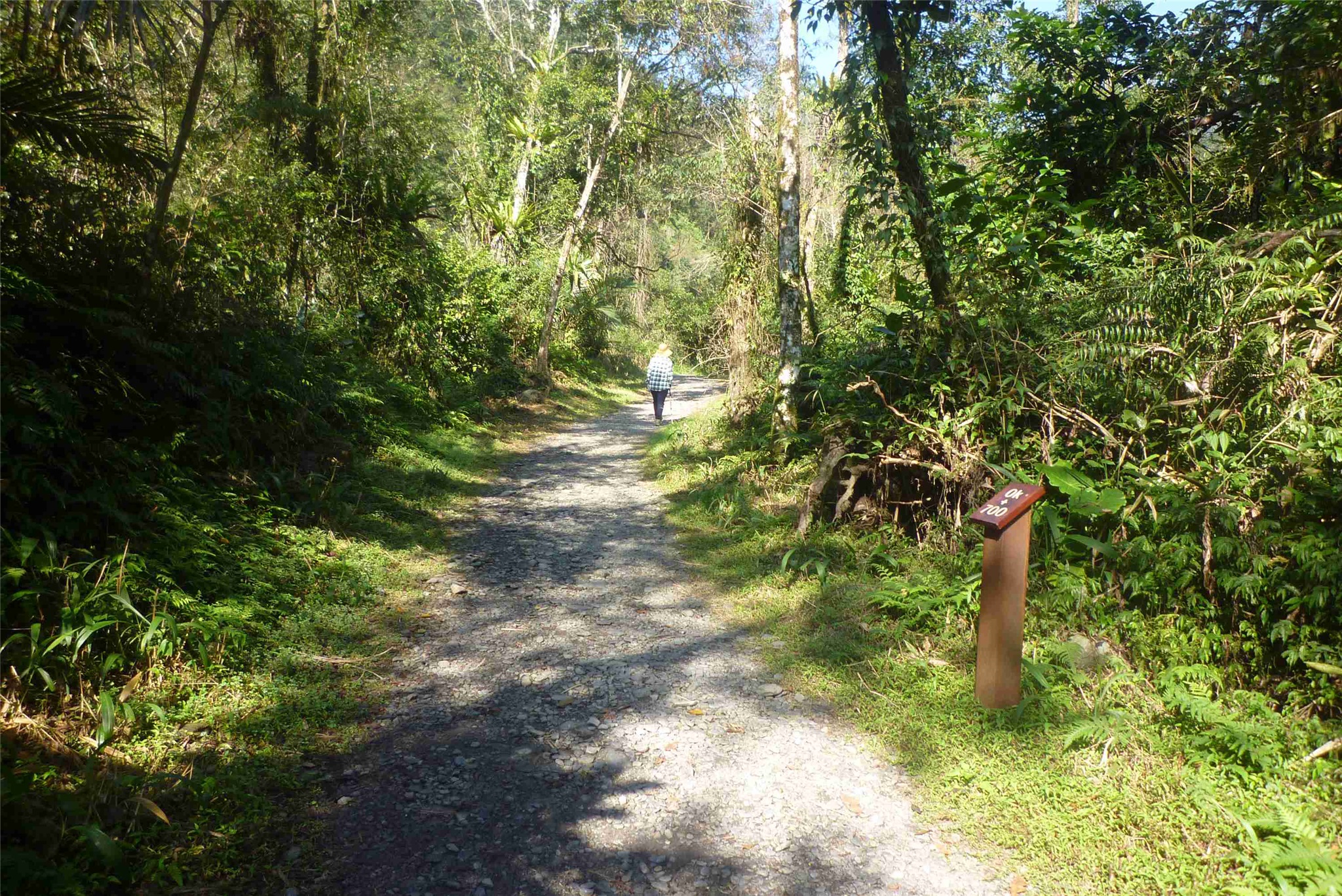 8松羅國家步道至巨石溪瀑,步道終點約1.9K,每0.1K有里程標