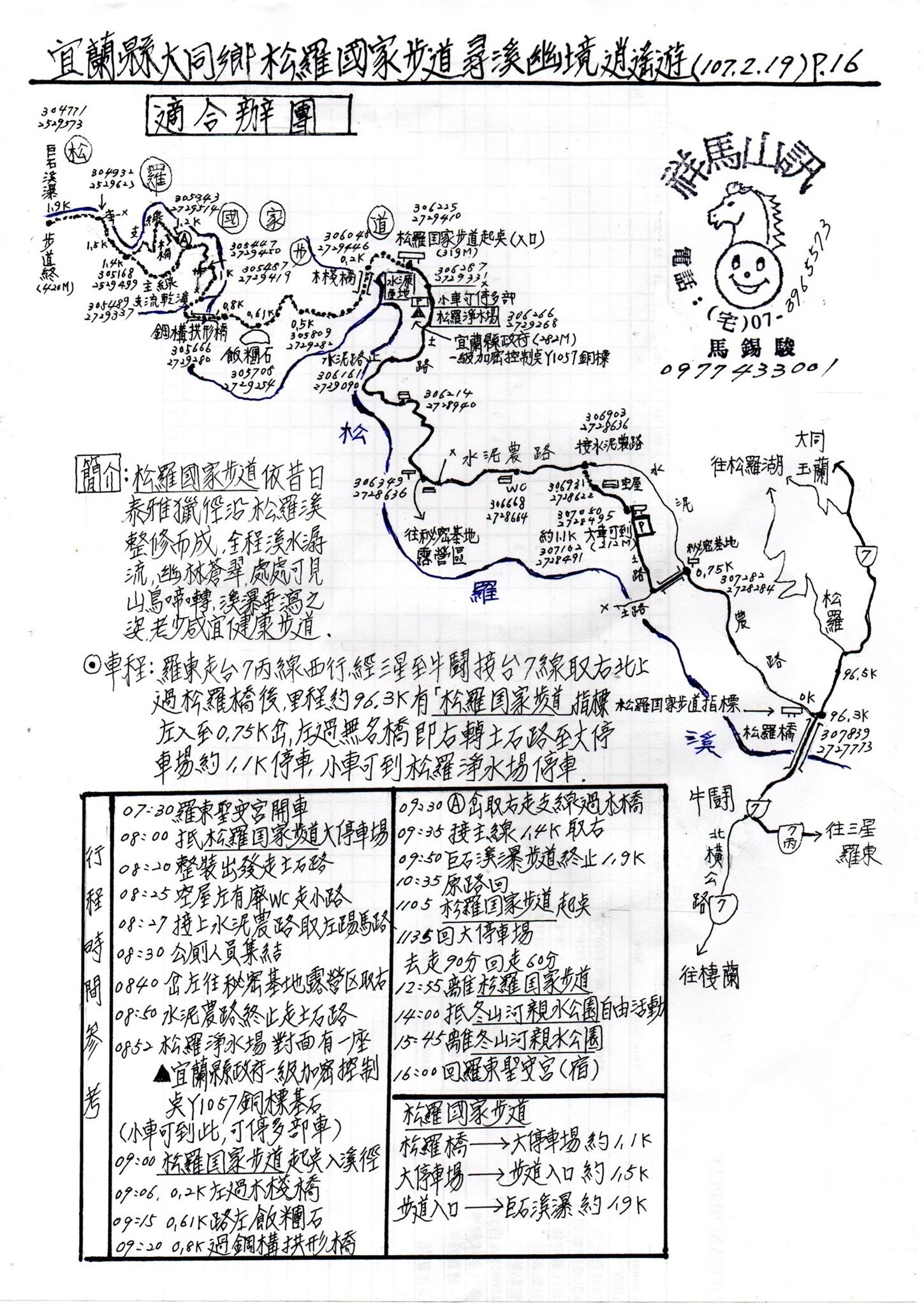 1羅東走台7丙線經三星接台7線(北橫),取右北上經松羅橋後,在里程96.3K左入松羅國家步道