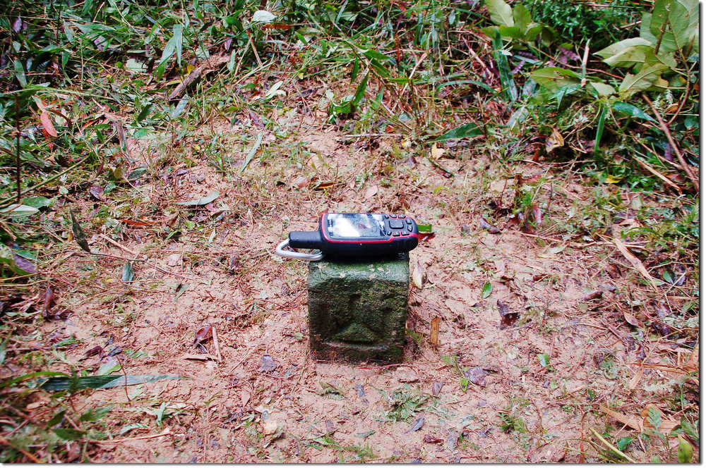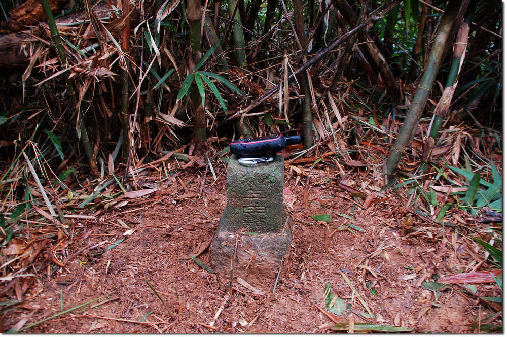 山徑陡峭,拉著植被小樹上攀,久久才見老舊不堪的舊路條。