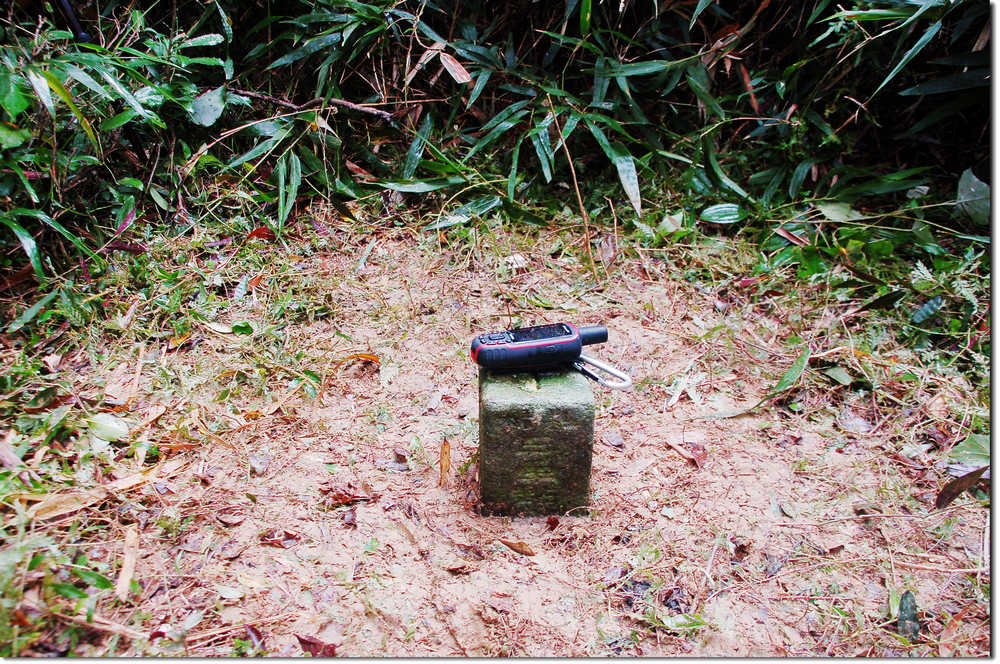 14:16登頂川七山,山頂長滿雜草細竹,要是沒精確定位很難找到,行前看小李兄的登頂照基點緊偎著較粗的竹叢而立,所以一登頂即正確判斷基點點位,不費吹灰之力即找到川七山森林三角點。