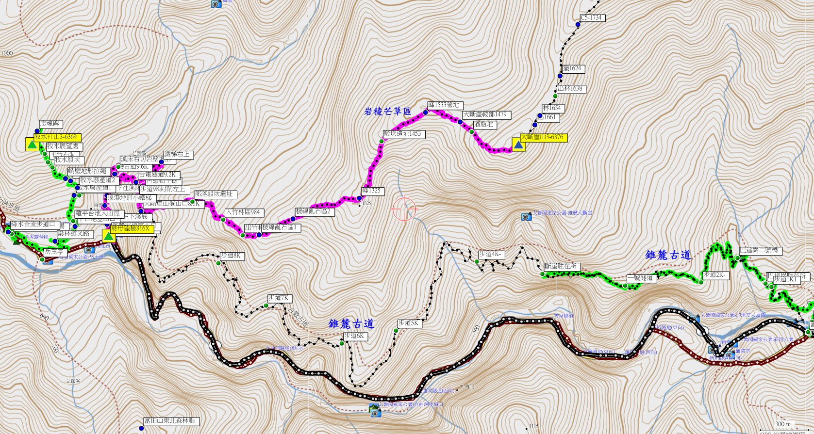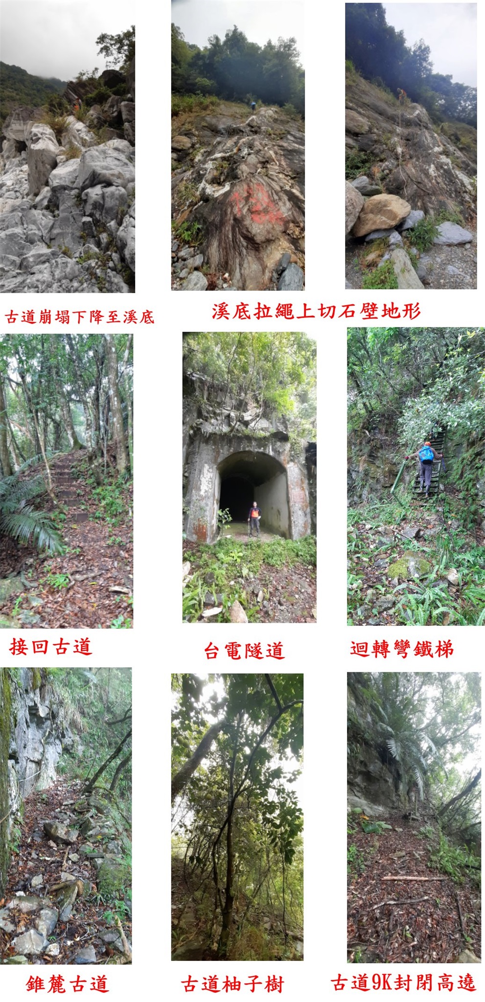 07:27古道9K處,前方古道可能有舊崩塌地封閉,跟隨古道指標取左高繞。
