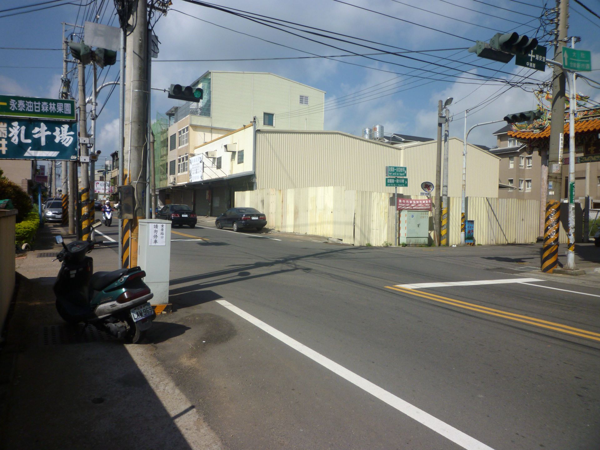 1蔗廓走遊園路一段往台中監理所,見右有「瑞安宮」牌樓,左有「瑞井乳牛場」為主要入口