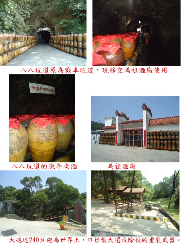 坑道主體由花崗岩構成,相傳是先民躲避海盜的藏身山洞;國軍進駐馬祖後,加以鑿高、挖深與強固,闢為戰車坑道,全長200公尺,可容納一個步兵團的兵力。後來移交馬祖酒廠使用,坑道內冬暖夏涼,長年溫度約15-20℃間,具恆溫穩定作用,是絕佳的儲藏酒窖,尤其陳年老酒,因停產之故,現存均為十五年以上,存量賣完即停,更顯其珍貴。坑道內酒香四溢,置身其中不禁令人微醺。