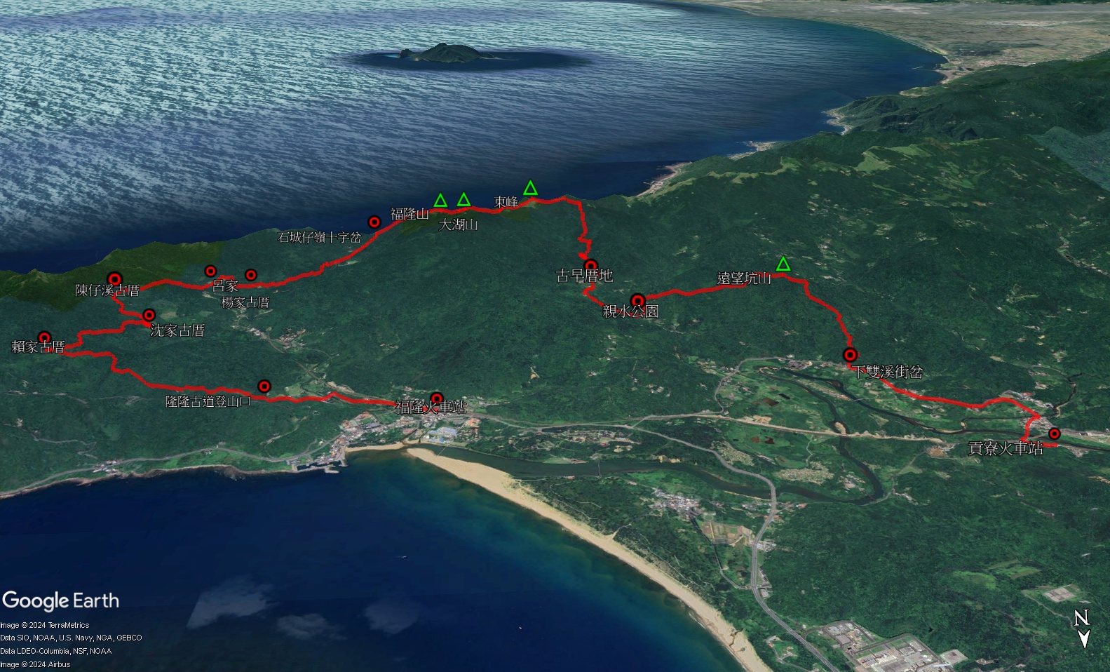 隆隆山下古厝群+雪山尾稜南段、舊保線路、遠望坑親水公園、遠望坑山出貢寮