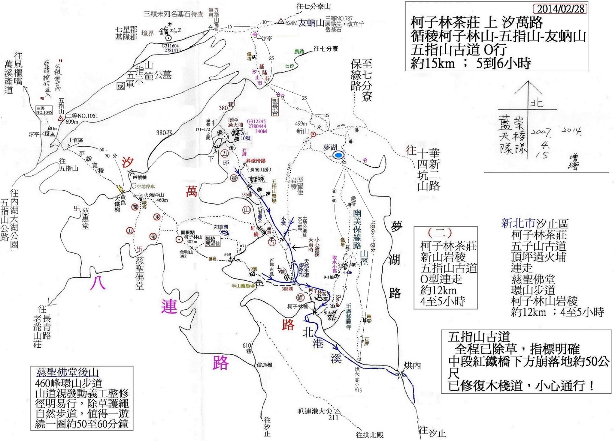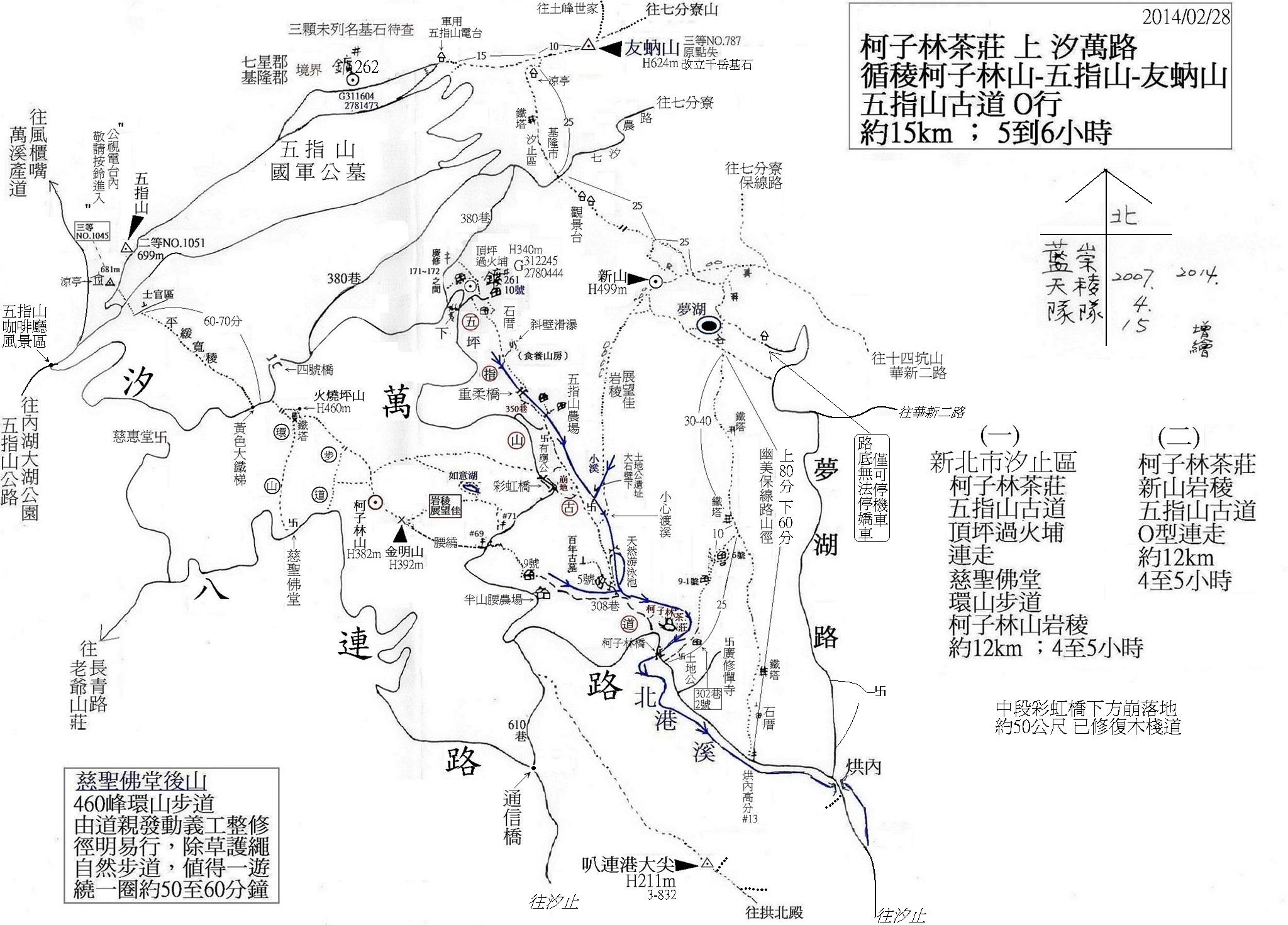 (彩色版) 柯子林茶莊上汐萬路、循稜柯子林山、五指山、友納山、五指山古道O行2014年